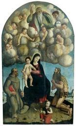 | Keywords: Anônimo - Deus Pai, A Virgem, o Menino Jesus, São João Batista, São Francisco e Santo Onofre.jpg author after century 16 technique oil canvas cm 227 141 Institution Museu Nacional de Belas Artes accession number T 2421 object history Coleção Angelo Antonio Rósea credit line PVP LangSwitch Altar painting Formerly attributed to the circle of Perugino It is now thought to be closer to the manner of Marco Cardisco 1486-1542 Este retábulo era documentado anteriormente no museu como obra do círculo de Perugino Acredita-se atualmente que esteja mais próximo da maneira de Marco Cardisco 1486-1542 podendo se tratar de um seguidor deste Acervo de Obras de Arte Europeia em Coleções Brasileiras Plus Ultra http //www plusultra art br/2/detalhe asp idobra 375 info; http //www plusultra art br/2/sistema2/arquivosUpload/02421 jpg image PD-old-100 DEFAULTSORT Anonymous Onuphrius Marco Cardisco xafter Onuphrius Italian paintings in the Museu Nacional de Belas Artes 16th-century paintings in the Museu Nacional de Belas Artes 16th-century paintings of Madonna and Child with the Infant Saint John 16th-century paintings of God the Father 16th-century paintings of Francis of Assisi Altar paintings Paintings of Onuphrius Paintings with semicircular top Renaissance paintings in Brazil Renaissance paintings of saints Religious paintings in the Museu Nacional de Belas Artes Paintings of Christian saints in Brazil |