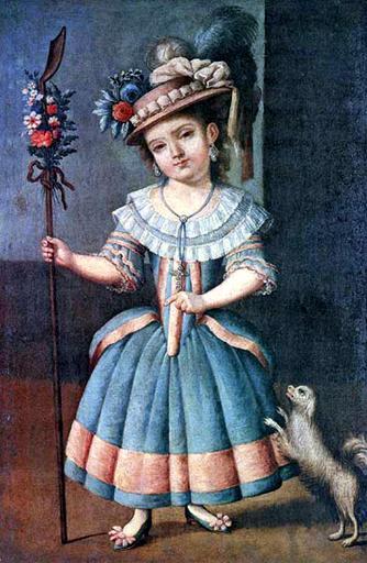 | Keywords: Anónimo - Retrato de Francisca Xaviera de Paula.jpg Francisca Xaviera Paula century 18 Oil on canvas cm 91 62 Museum National Museum of Fine Arts of Havana http //mnbacuba com/f/mnbac/img/museum/n/ArtWork/AU/p-80 jpg Other versions PD-old DEFAULTSORT 1799 before; Francisca Xaviera Paula 18th-century unidentified painters Latin American paintings in the Museo Nacional de Bellas Artes Cuba Paintings from Mexico 18th-century oil portraits of girls at full length Feathered headdresses in art female Female shoes in portrait paintings Females with earrings in art Portrait paintings of standing girls Portrait paintings of young girls 18th-century portrait paintings not categorised by year Portrait paintings of girls with dogs Portraits wearing cross necklaces Naïve portraits before 20th century Girls with earrings |