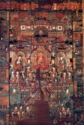 | Keywords: Anonymous-Baoen Sutra Paradise2.jpg Mogao Caves near Dun Huang in the 1000 Buddha cave Shakyamuni is seated in the center of the image The left and right sides show seen of Prince Siddhartha as described in the Baoen Sutra Located at the British Museum Department of Asia 莫高窟 釋迦牟尼 中 大英博物館 Zhongguo gu dai shu hua jian ding zu 中国古代书画鑑定组 1997 Zhongguo hui hua quan ji 中国绘画全集 Zhongguo mei shu fen lei quan ji Beijing Wen wu chu ban she Volume 1 Creator Anonymous Museum British Museum credit line Tang Dynasty ca 850 PD-Art Gautama Buddha Buddhist paintings of the Tang Dynasty Mogao Cave paintings Art of ancient China in the British Museum |