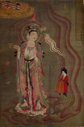 | Keywords: Anonymous-Bodhisattva Leading the Way.jpg Dun Huang in the 1000 Buddha cave cave 17 The bodhisattva is leading a woman to the Pure Land on the golden cloud in the upper left corner His right hand contains an incense burner His left hand contains a lotus flower Located at the British Museum Department of Asia 敦煌 大英博物館 Zhongguo gu dai shu hua jian ding zu 中国古代书画鑑定组 1997 Zhongguo hui hua quan ji 中国绘画全集 Zhongguo mei shu fen lei quan ji Beijing Wen wu chu ban she Volume 1 Creator Anonymous Museum British Museum credit line ~ 875 Buddhist paintings of the Tang Dynasty Bodhisattvas Art of ancient China in the British Museum Mogao Cave paintings Department of Asia British Museum PD-old-100 ImageNote 1 1283 481 47 162 1333 2019 2 引路菩薩 - Bodhisattva Leading the Way ImageNoteEnd 1 |