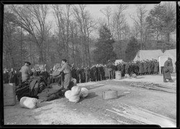 | Keywords: nara:arcid=532785 u.s. national archives usnationalarchives lewis hine lewishine blackandwhite monochrome photo border outdoor black and white Original Caption: Another view of the issuing of equipment to the new arrivals at CCC Camp, TVA #23, between Walker's Ford and Lone Mountain, Tennessee, in the Clinch River district, November 1933 U.S. National Archives’ Local Identifier: 142-H-167 Photographer: Hine, Lewis Subjects: New Deal, 1933-1939 Rural areas Tennessee (United States, North and Central America) state Water projects Persistent URL: research.archives.gov/description/532785 Repository: Still Picture Records Section, Special Media Archives Services Division (NWCS-S), National Archives at College Park, 8601 Adelphi Road, College Park, MD, 20740-6001. For information about ordering reproductions of photographs held by the Still Picture Unit, visit: www.archives.gov/research/order/still-pictures.html Reproductions may be ordered via an independent vendor. NARA maintains a list of vendors at www.archives.gov/research/order/vendors-photos-maps-dc.html Access Restrictions: Unrestricted Use Restrictions: Unrestricted Original Caption: Another view of the issuing of equipment to the new arrivals at CCC Camp, TVA #23, between Walker's Ford and Lone Mountain, Tennessee, in the Clinch River district, November 1933 U.S. National Archives’ Local Identifier: 142-H-167 Photographer: Hine, Lewis Subjects: New Deal, 1933-1939 Rural areas Tennessee (United States, North and Central America) state Water projects Persistent URL: research.archives.gov/description/532785 Repository: Still Picture Records Section, Special Media Archives Services Division (NWCS-S), National Archives at College Park, 8601 Adelphi Road, College Park, MD, 20740-6001. For information about ordering reproductions of photographs held by the Still Picture Unit, visit: www.archives.gov/research/order/still-pictures.html Reproductions may be ordered via an independent vendor. NARA maintains a list of vendors at www.archives.gov/research/order/vendors-photos-maps-dc.html Access Restrictions: Unrestricted Use Restrictions: Unrestricted |
