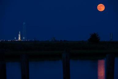 Keywords: full moon rises SKY Orbital Sciences Corporation Antares rocket Cygnus spacecraft onboard