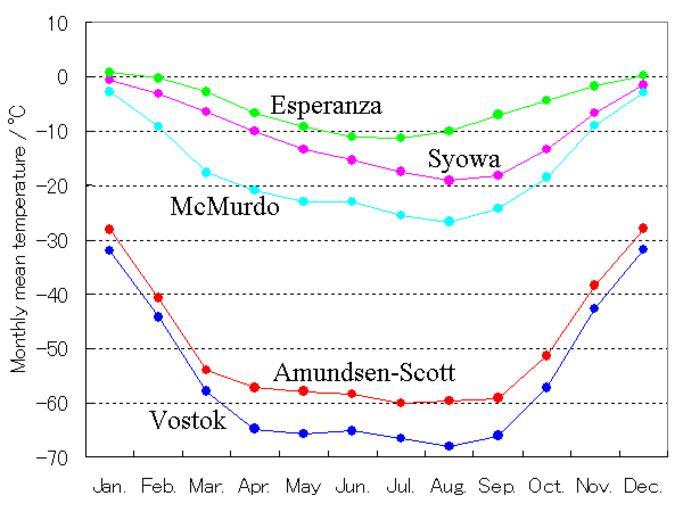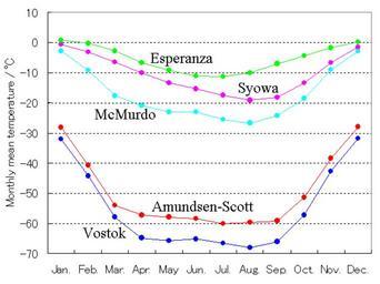 Keywords: Antarctic monthly mean temperature.PNG en Antarctic monthly mean temperature ja 南極の 別平 気温 Own As6022014 2009-12-4 Polar climate