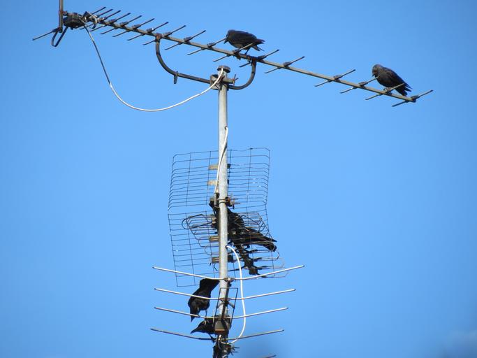 Keywords: antenna tv antenna reception old blue sky birds dig black bird corvidae