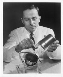 | Keywords: smithsonian institution smithsonianinstitution man scientist 1959 labcoat engineer electron tube rca smithsonian institution archives smithsonianinstitutionarchives bianculli people blackandwhite monochrome indoor black and white Subject: Bianculli, Anthony J. 1925-        RCA Corporation Type: Black-and-white photographs Date: 1959     3-11-1959 Topic: Mechanical engineering Local number: SIA Acc. 90-105 [SIA2007-0203] Summary: In this publicity photo, Anthony J. Bianculli (b. 1925), Engineering Manager of the RCA Electron Tube Division, is shown holding a model of an electron tube Cite as: Acc. 90-105 - Science Service, Records, 1920s-1970s, Smithsonian Institution Archives Persistent URL:http://siris-archives.si.edu/ipac20/ipac.jsp?&profile=all&source=~!siarchives&uri=full=3100001~!289391~!0#focus Repository:Smithsonian Institution Archives View more collections from the Smithsonian Institution. Subject: Bianculli, Anthony J. 1925- RCA Corporation Type: Black-and-white photographs Date: 1959 3-11-1959 Topic: Mechanical engineering Local number: SIA Acc. 90-105 [SIA2007-0203] Summary: In this publicity photo, Anthony J. Bianculli (b. 1925), Engineering Manager of the RCA Electron Tube Division, is shown holding a model of an electron tube Cite as: Acc. 90-105 - Science Service, Records, 1920s-1970s, Smithsonian Institution Archives Persistent URL:http://siris-archives.si.edu/ipac20/ipac.jsp?&profile=all&source=~!siarchives&uri=full=3100001~!289391~!0#focus Repository:Smithsonian Institution Archives View more collections from the Smithsonian Institution. |