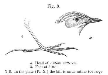 | Keywords: Anthus nattereri head and foot.jpg « Anthus nattereri » Anthus nattereri Ochre-breasted Pipit - head and foot « Anthus nattereri » Anthus nattereri Pipit ocré - tête et patte http //archive org/stream/ibis24brit page/366/mode/2up The Ibis ser 4 vol 2 creator Philip Lutley Sclater 1878 PD-old-100 Anthus nattereri Ibis 1878 Passeriformes feet Motacillidae anatomy |