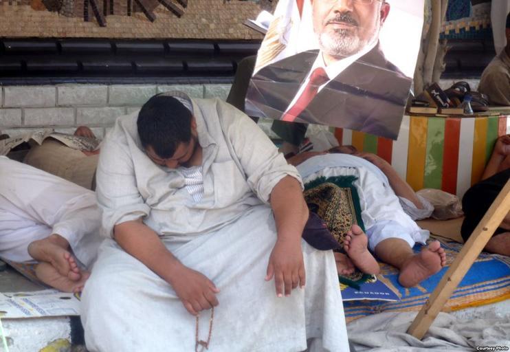 | Keywords: Anti-coup protesters resting outside Rabaa al-Adawiya mosque Cairo 11-July-2013.jpg en Original desciption Exhaused Morsi supporter resting outside Muslim Brotherhood stronghold outside Cairo's Rabaa al-Adawiya mosque July 11 Photo VOA/Sharon Behn http //gdb voanews com/3C714B11-AA1B-472D-9BC2-9555409C65F5_mw1228_mh548_s jpg VOA/Sharon Behn 2013-07-11 PD-USGov-VOA Source image included http //www webcitation org/6LoKHwTQG Pro Anti-Morsi Groups Rally in Cairo Voice Of America 12 July 2013 archived from the http //www voanews com/media/photogallery/egypt-protest-gallery/1700462 html original on 12 December 2013 2013 coup d'état in Egypt Demonstrations and protests in Egypt in 2013 Pro-Morsi protests |