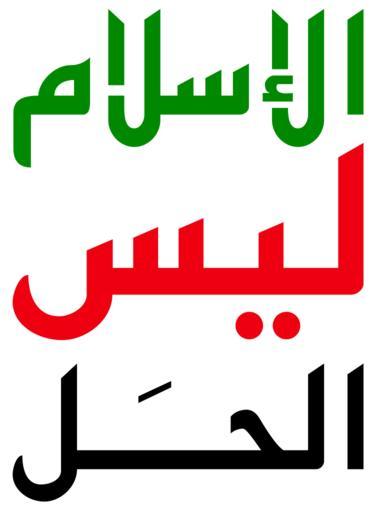 | Keywords: Anti Muslim Brotherhood slogan.svg الإسلام ليس الحل Islam is not the solution <br>An anti Muslim Brotherhood slogan see Google search http //www google com/search q D8 A7 D9 84 D8 A5 D8 B3 D9 84 D8 A7 D9 85+ D9 84 D9 8A D8 B3+ D8 A7 D9 84 D8 AD D9 84 ie utf-8 oe utf-8 aq t which is a simple negation of the famous Muslim Brotherhood motto own Graphic is self-made based on simplifying and stylizing font characters declared to be in the public domain 2013 in SVG file form AnonMoos Political anti logos SVG Anti logos Texts in Arabic script rendered to SVG Islam Is The Solution |