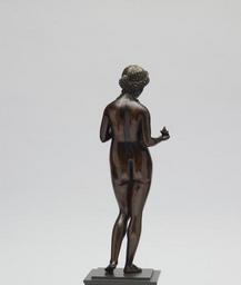 | Keywords: Antico - Venus as Spiritual Love (Venus Caritas) - Walters 541027 - View C.jpg The artist's preoccupation with antiquity earned him his nickname His patrons the Gonzaga family of Mantua sent him to Rome to study ancient sculpture so that he would be able to seek out antiquities for purchase discern forgeries and produce small versions in bronze of famous statues The last are usually creative interpretations which he called his antiquities This fine Venus may be loosely based on the same unrestored torso of a Roman copy after a Greek original as Venus Pudica Typical of Antico's style are the highly finished surface dark patina touches of gilding in the hair and silver inlay for the eyes a detail found in ancient bronzes This Venus represents Spiritual Love expressed through her modest pose her lamp of celestial fire and her crown of Virtue Around 1520 Antico was creating pieces for his major patron in Mantua the marchioness Isabella d'Este whose refined tastes are here exemplified between 1520 1523 bronze with traces of gilt and silver inlay cm 45 6 accession number 54 1027 30236 Arnold Seligmann New York date and mode of acquisition unknown Henry Walters Baltimore 1931 mode of acquisition unknown Walters Art Museum Henry Walters Acquired by Henry Walters 1931 The Allure of Bronze The Walters Art Gallery Baltimore 1995 I tesori del collezionismo dei Gonzaga Museo di Palazzo Ducale Mantova 2008-2009 Antico The Golden Age of Renaissance Bronzes National Gallery of Art Washington; The Frick Collection New York 2011-2012 place of origin Mantua Italy Walters Art Museum license Renaissance sculpture in the Walters Art Museum Pier Jacopo Alari Bonacolsi Media contributed by the Walters Art Museum needs category review |