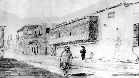 | Keywords: Antíguo jirón Pizarro.jpg es Aparece en primer plano la Casa de la Marqueza de Herrera viuda de Bracamonte ; en la esquina el antíguo Palacio Municipal painting 1839 photo 2012-05-20 Dibujo del antiguo jirón Pizarro en el centro histórico de Trujillo Perú publicado en Perú en 1839 Creator Léonce Angrand 1886 Paintings Trujillo Peru Léonce Angrand |