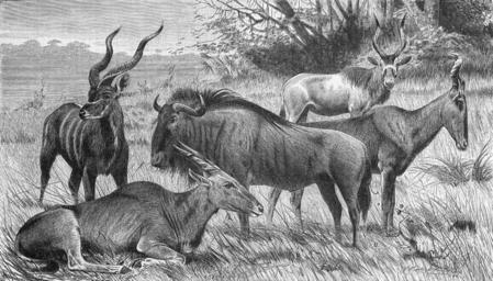 | Keywords: Antiloper II, Nordisk familjebok.png Antiloper Antilopes 6 Mendesantilop Addax nasomaculatus top right <br> 7 Kudu Strepsiceros kudu Tragelaphus strepsiceros top left <br> 8 Kama Alcelaphus caama bottom right <br> 9 Eland Orea canna Taurotragus oryx bottom left <br> 10 En gnu-art Connochaetes taurinus middle <br> Nordisk familjebok 1904 vol 1 Antiloper http //runeberg org/nfba/0633 html 1904 Nordisk familjebok PD-Ugglan Addax nasomaculatus Kudus in art Alcelaphus caama Elands in art Wildebeests in art Bovidae Mammals of Africa Wilhelm Kuhnert |