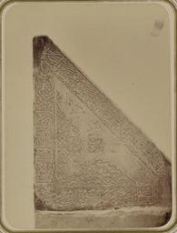 | Keywords: Antiquities of Samarkand. Madrasah of Bibi Khanym. Congregational Mosque. Inscription on the Anterior of the Marble Reading-Stand WDL3764.png Artwork ru Богаевский иколай Владими ович 1843 1912 гг fr Bogaevskii Nikolaï V 1843-1912 en Bogaevskii Nikolai V 1843-1912 zh 亚历山大·L· ,1840-1888 年 pt Bogaevskii Nikolai V 1843-1912 ar بوغافسكي، نيكولاي ف ، 1843-1912 es Bogaevskii Nikolai V 1843-1912 ru Сама кандские д евности ед есе Биби Ханым Собо ная мечеть адпись на пе едней сто оне м амо ного пюпит а fr Antiquités de Samarcande Madrasa de Bibi Khanym Mosquée de congrégation Inscription sur la face antérieure du pupitre en marbre en Antiquities of Samarkand Madrasah of Bibi Khanym Congregational Mosque Inscription on the Anterior of the Marble Reading-Stand zh 撒马尔罕古迹 比比·哈努姆伊斯兰教学校 公理会清 寺 大理石诵经台正 的铭文 pt Antiguidades de Samarcanda Madrassa de Bibi Khanym Mesquita congregacional Inscrição na parte anterior do atril de mármore ar آثار سمرقند مدرسة بيبي خانوم المسجد الجامِع نقش على واجهة منصة قراءة القرآن الرخامية ru Эта фотог афия пе едней т еугольной сто оны м амо ного де жателя Ко ана в главной мечети ансамбля Биби Ханым в Сама канде Узбекистан соде жится в а хеологической части <em> Ту кестанского альбома </em> Шеститомное фотог афическое исследование было п оведено в 1871 1872 гг под уководством гене ала Константина П фон Кауфмана пе вого гене ал-губе нато а 1867 1882 гг Ту кестана как называли те ито ию Цент альной Азии п инадлежавшую Российской импе ии В альбоме уделяется особое внимание исламской а хитекту е Сама канда в том числе памятникам XIV и XV вв пе иода п авления Тиму а Таме лана и его п еемников Пост оенный в 1399 1405 гг с использованием т офеев индийской кампании Тиму а ансамбль Биби Ханым был местом асположения главной или пятничной мечети го ода названной в честь ста шей жены Тиму а Са ай ульк Ханым ечеть находящаяся в цент е ансамбля является одной из к упнейшей в исламском ми е Внут и мечети находится ог омный де жатель Ко ана <em>rihal</em> поже твованный внуком Тиму а Улуг-Беком и состоящий из двух массивных т еугольных м амо ных блоков покоящихся на м амо ном постаменте Здесь показана т еугольная сто она одного из блоков ук ашенная езными деко ациями соде жащими цветочные узо ы с каемками укописного письма Элемент заднего фона был удален чтобы подче кнуть езьбу В 1875 г че ез несколько лет после того как была сделана эта фотог афия пюпит был пе енесен во дво пе ед мечетью <br> адписи; Подставки для Ко ана; Фотог афические исследования fr Cette photographie du côté triangulaire antérieur du porte-Coran en marbre de la mosquée principale de l'ensemble de Bibi Khanym à Samarcande Ouzbékistan est extraite de l'ouvrage archéologique <em>Album du Turkestan</em> Cet inventaire photographique en six volumes fut réalisé entre 1871 et 1872 sous le patronage du général Konstantin P von Kaufman premier gouverneur général 1867-1882 du Turkestan nom donné aux territoires d'Asie centrale de l'Empire russe L'album consacre une attention particulière à l'architecture islamique de Samarcande avec notamment des monuments datant des XIV<sup>e</sup> et XV<sup>e</sup> siècles lors du règne de Tamerlan et de ses successeurs Construit entre 1399 et 1405 avec le butin de la campagne de Tamerlan en Inde l'ensemble de Bibi Khanym était l'emplacement de la mosquée principale de la ville ou Mosquée du Vendredi nommée en hommage à la première épouse de Tamerlan Sarai Mulk Khanym La mosquée une des plus grandes du monde islamique se trouve au centre de l'ensemble Elle contenait un énorme porte-Coran <em>rihal</em> qui fut offert par Ulugh Beg petit-fils de Tamerlan et qui comportait deux blocs de marbre triangulaires massifs reposant sur une plinthe en marbre Cette photographie représente le côté triangulaire de l'un des blocs décoré de sculptures de motifs à fleurs et de bandes d'écriture cursive Les détails en arrière-plan ont été effacés pour mettre en évidence la sculpture En 1875 quelques années après la prise de cette photographie le pupitre fut déplacé dans la cour devant la mosquée <br>Inscriptions; Pupitres pour le Coran; Inventaires photographiques en This photograph of the anterior triangular side of the marble Qur an holder at the main mosque of the Bibi Khanym ensemble in Samarkand Uzbekistan is from the archeological part of <em>Turkestan Album</em> The six-volume photographic survey was produced in 1871-72 under the patronage of General Konstantin P von Kaufman the first governor-general 1867-82 of Turkestan as the Russian Empire s C