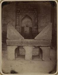 Keywords: Antiquities of Samarkand. Madrasah of Bibi Khanym. Congregational Mosque. View of the Marble Reading-Stand for the Qur’an inside the Mosque WDL3769.png Artwork ru Богаевский иколай Владими ович 1843 1912 гг fr Bogaevskii Nikolaï V 1843-1912 en Bogaevskii Nikolai V 1843-1912 zh 亚历山大·L· ,1840-1888 年 pt Bogaevskii Nikolai V 1843-1912 ar بوغافسكي، نيكولاي ف ، 1843-1912 es Bogaevskii Nikolai V 1843-1912 ru Сама кандские д евности ед есе Биби Ханым Собо ная мечеть Вид м амо ного пюпит а для Ко ана внут и мечети fr Antiquités de Samarcande Madrasa de Bibi Khanym Mosquée de congrégation Vue du pupitre en marbre pour le Coran dans la mosquée en Antiquities of Samarkand Madrasah of Bibi Khanym Congregational Mosque View of the Marble Reading-Stand for the Qur an inside the Mosque zh 撒马尔罕古迹 比比·哈努姆伊斯兰教学校 公理会清 寺 清 寺内的古兰经大理石诵经台像 pt Antiguidades de Samarcanda Madrassa de Bibi Khanym Mesquita congregacional Imagem do atril de mármore para o Alcorão dentro da mesquita ar آثار سمرقند مدرسة بيبي خانوم المسجد الجامِع منظر لمنصة قراءة القرآن الرخامية داخل المسجد ru Эта фотог афия м амо ного де жателя Ко ана в главной мечети ансамбля Биби Ханым в Сама канде Узбекистан соде жится в а хеологической части <em> Ту кестанского альбома </em> Шеститомное фотог афическое исследование было п оведено в 1871 1872 гг под уководством гене ала Константина П фон Кауфмана пе вого гене ал-губе нато а 1867 1882 гг Ту кестана как называли те ито ию Цент альной Азии п инадлежавшую Российской импе ии В альбоме уделяется особое внимание исламской а хитекту е Сама канда в том числе памятникам XIV и XV вв пе иода п авления Тиму а Таме лана и его п еемников Пост оенный в 1399 1405 гг с использованием т офеев индийской кампании Тиму а ансамбль Биби Ханым был местом асположения главной или пятничной мечети го ода названной в честь ста шей жены Тиму а Са ай ульк Ханым ечеть находящаяся в цент е ансамбля является одной из к упнейшей в исламском ми е Здесь изоб ажен ог омный езной м амо ный де жатель Ко ана <em>rihal</em> асположенный внут и мечети Публичные чтения Ко ана иг али важную оль в богослужении и фо ма rihal или <em>лау</em> имела особое значение в мечети такого азме а После индийского похода м амо часто появлялся в пост ойках Тиму идов и его использование здесь подче кивало цент альное место Ко ана азме ы кото ого должны были соответствовать азме у м амо ной подставки а заднем плане видна а очная ниша пок ытая ке амикой <br>Исламская а хитекту а; Подставки для Ко ана; ечети; Фотог афические исследования fr Cette photographie d'un porte-Coran de la mosquée principale de l'ensemble de Bibi Khanym à Samarcande Ouzbékistan est extraite de l'ouvrage archéologique <em>Album du Turkestan</em> Cet inventaire photographique en six volumes fut réalisé entre 1871 et 1872 sous le patronage du général Konstantin P von Kaufman premier gouverneur général 1867-1882 du Turkestan nom donné aux territoires d'Asie centrale de l'Empire russe L'album consacre une attention particulière à l'architecture islamique de Samarcande avec notamment des monuments datant des XIV<sup>e</sup> et XV<sup>e</sup> siècles lors du règne de Tamerlan et de ses successeurs Construit entre 1399 et 1405 avec le butin de la campagne de Tamerlan en Inde l'ensemble de Bibi Khanym était l'emplacement de la mosquée principale de la ville ou Mosquée du Vendredi nommée en hommage à la première épouse de Tamerlan Sarai Mulk Khanym La mosquée une des plus grandes du monde islamique se trouve au centre de l'ensemble La photographie présente un énorme porte-Coran <em>rihal</em> en marbre sculpté dans la mosquée Les lectures publiques du Coran jouaient un rôle essentiel dans la pratique du culte et la forme du rihal ou <em>lau</em> suggère son importance particulière dans une mosquée de cette taille Le marbre fut souvent employé dans les structures timourides après la compagne en Inde et son utilisation représente ici l'aspect central du Coran dont les dimensions devaient correspondre à la taille du pupitre en marbre En arrière-plan une niche voûtée recouverte de céramiques est visible <br>Architecture islamique; Pupitres pour le Coran; Mosquées; Inventaires photographiques en This photograph of a marble Qur an holder at the main mosque of the Bibi Khanym ensemble in Samarkand Uzbekistan is from the archeological part of <em>Turkestan Album</em> The six-volume photographic survey was produced in 1871-72 under the patronage of General Konstantin P von Kaufman the first governor-general 1867-82 of Turkestan as the Russian Empire s Central A