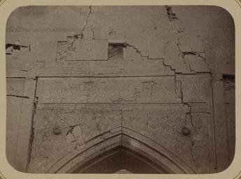 | Keywords: Antiquities of Samarkand. Madrasah of Ulugh Beg. Main Facade (Eastern). Middle of the Inscription WDL3862.png Artwork ru Богаевский иколай Владими ович 1843 1912 гг fr Bogaevskii Nikolaï V 1843-1912 en Bogaevskii Nikolai V 1843-1912 zh 亚历山大·L· ,1840-1888 年 pt Bogaevskii Nikolai V 1843-1912 ar بوغافسكي، نيكولاي ف ، 1843-1912 es Bogaevskii Nikolai V 1843-1912 ru Сама кандские д евности ед есе Улугбека Главный фасад восточный Се едина надписи fr Antiquités de Samarcande Madrasa d'Ulugh Beg Façade principale est Milieu de l'inscription en Antiquities of Samarkand Madrasah of Ulugh Beg Main Facade Eastern Middle of the Inscription zh 撒马尔罕古迹 鲁伯· 格伊斯兰教学校 主立 ( 侧) 铭文的中间部分 pt Antiguidades de Samarcanda Madrassa de Ulugh Beg Fachada principal lado leste Meio da inscrição ar آثار سمرقند مدرسة أُلوك بيك الواجهة الرئيسية الشرقية الجزء الأوسط من النقش ru Эта фотог афия ф агмента восточного фасада мед есе Улугбека в Сама канде Узбекистан соде жится в а хеологической части <em> Ту кестанского альбома </em> Шеститомное фотог афическое исследование было подготовлено и издано в 1871 1872 гг под пат онажем гене ала Константина П фон Кауфмана пе вого гене ал-губе нато а 1867 1882 гг Ту кестана как называли в то в емя те ито ию Цент альной Азии п инадлежавшую Российской импе ии В альбоме уделяется особое внимание исламской а хитекту е Сама канда в том числе памятникам XIV и XV вв пе иода п авления Тиму а Таме лана и его п еемников В цент е Сама канда находится ансамбль Регистан объединяющий в себе т и основных об азца <em>madrasah</em> мед есе елигиозных школ Самое ста ое мед есе площади Регистан пост оенное в 1417 1420 гг названо в честь п авителя-ученого Улугбека 1393 1449 гг внука Тиму а ед есе в течение долгого в емени считалось ведущим цент ом исламского об азования а фотог афии видна ст ельчатая каменная а ка над по талом внут и ниши ог омной а ки <em>айвана</em> сводчатого зала с одним отк ытым концом ок уженного с т ех сто он стенами в кото ой находится вход во дво мед есе есмот я на значительные пов еждения нанесенные фасаду на ф агменте видны многоцветные ке амические ук ашения в том числе сложные геомет ические фигу ы по обеим сто онам а ки а также цветочные мотивы и завитки ке амическая надпись пе сидско-а абским письмом в укописном стиле Такие под обные фотог афии свидетельствуют о п иве женности тщательному изучению исламских памятников <br>А хитекту ные ук ашения и деко ативные элементы; адписи; Исламская а хитекту а; ед есе; Фотог афические исследования fr Cette photographie d'un détail de la façade est de la madrasa d'Ulugh Beg à Samarcande Ouzbékistan est extraite de l'ouvrage archéologique <em>Album du Turkestan</em> Cet inventaire photographique en six volumes fut réalisé entre 1871 et 1872 sous le patronage du général Konstantin P von Kaufman premier gouverneur général 1867-1882 du Turkestan nom donné aux territoires d'Asie centrale de l'Empire russe L'album consacre une attention particulière à l'architecture islamique de Samarcande avec notamment des monuments datant des XIV<sup>e</sup> et XV<sup>e</sup> siècles lors du règne de Tamerlan et de ses successeurs Situé au centre de Samarcande l'ensemble du Registan est composé de trois exemples majeurs de <em>madrasa</em> école religieuse La madrasa la plus ancienne existant encore sur la place du Registan porte le nom du roi-astronome et petit-fils de Tamerlan Ulugh Beg vers 1393-1449 qui la construisit entre 1417 et 1420 La madrasa fut longtemps considérée comme un centre important de l'éducation islamique Cette vue présente l'arceau pointu en pierre situé au-dessus d'un portail à l'intérieur de la niche du grand arceau de l'<em>aivan </em> salle voûtée dotée de trois murs et d'un côté ouvert qui contenait l'entrée menant vers la cour de la madrasa Malgré les dommages sur la façade ce segment arbore des ornements en céramique polychrome notamment des figures géométriques complexes de part et d'autre de l'arceau ainsi que des motifs à fleurs et de vrilles Une inscription horizontale de céramique sophistiquée en écriture cursive perso-arabe surplombe l'arceau Les photographies détaillées comme celle présentée ici révèlent le dévouement pour l'étude minutieuse des monuments islamiques <br>Décorations et ornements architecturaux; Inscriptions; Architecture islamique; Madrasas; Inventaires photographiques en This photograph of a detail of the east facade of the Ulugh Beg Madrasah in Samarkand Uzbekis
