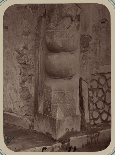 | Keywords: Antiquities of Samarkand. Madrasah of Ulugh Beg. Inner Courtyard (Northern Side). Column Base at the Main Portal Niche WDL3865.png Artwork ru Богаевский иколай Владими ович 1843 1912 гг fr Bogaevskii Nikolaï V 1843-1912 en Bogaevskii Nikolai V 1843-1912 zh 亚历山大·L· ,1840-1888 年 pt Bogaevskii Nikolai V 1843-1912 ar بوغافسكي، نيكولاي ف ، 1843-1912 es Bogaevskii Nikolai V 1843-1912 ru Сама кандские д евности ед есе Улугбека Внут енний дво севе ная сто она Основание колонны у главной ниши по тала fr Antiquités de Samarcande Madrasa d'Ulugh Beg Cour intérieure côté nord Base d'une colonne de la niche de l'entrée principale en Antiquities of Samarkand Madrasah of Ulugh Beg Inner Courtyard Northern Side Column Base at the Main Portal Niche zh 撒马尔罕古迹 鲁伯· 格伊斯兰教学校 内部庭院(北侧) 主入口壁龛的柱基 pt Antiguidades de Samarcanda Madrassa de Ulugh Beg Pátio interno lado norte Base da coluna no nicho do portal principal ar آثار سمرقند مدرسة أُلوك بيك الفناء الداخلي الجانب الشمالي قاعدة العمود عند مشكاة البوابة الرئيسية ru Эта фотог афия элемента севе ной сто оны внут еннего дво а мед есе Улугбека в Сама канде Узбекистан соде жится в а хеологической части <em> Ту кестанского альбома </em> Шеститомное фотог афическое исследование было подготовлено и издано в 1871 1872 гг под пат онажем гене ала Константина П фон Кауфмана пе вого гене ал-губе нато а 1867 1882 гг Ту кестана как называли в то в емя те ито ию Цент альной Азии п инадлежавшую Российской импе ии В альбоме уделяется особое внимание исламской а хитекту е Сама канда в том числе памятникам XIV и XV вв пе иода п авления Тиму а Таме лана и его п еемников В цент е Сама канда находится ансамбль Регистан объединяющий в себе т и основных об азца <em>мед есе</em> елигиозных школ Самое ста ое мед есе площади Регистан названо в честь Улугбека п авителя-аст онома 1393 1449 гг и внука Тиму а кото ый пост оил его в 1417 1420 гг За в емя его п авления мед есе стало ведущим цент ом исламского об азования а этой фотог афии изоб ажено основание одной из колонн об амляющих а ку <em>айвана</em> сводчатого зала с одним отк ытым концом ок уженного с т ех сто он стенами в цент е севе ной стены дво а мед есе а сложном сегменти ованном м амо ном основании в углу а ки вы езаны п остые геомет ические и лиственные мотивы ад основанием асположена нижняя часть сте жня многоцветной ке амической колонны ук ашенная сложными геомет ическими и ботаническими узо ами Часть деко ативных элементов колонны в фо ме листьев ут ачена а фотог афии видны ск омные попытки восстановить нижние ки пичные стены ут атившие большую часть пе воначальной деко ативной пове хности <br>А хитекту ные ук ашения и деко ативные элементы; Колонны; Исламская а хитекту а; ед есе; Фотог афические исследования fr Cette photographie d'un détail du côté nord de la cour intérieure de la madrasa d'Ulugh Beg à Samarcande Ouzbékistan est extraite de l'ouvrage archéologique <em>Album du Turkestan</em> Cet inventaire photographique en six volumes fut réalisé entre 1871 et 1872 sous le patronage du général Konstantin P von Kaufman premier gouverneur général 1867-1882 du Turkestan nom donné aux territoires d'Asie centrale de l'Empire russe L'album consacre une attention particulière à l'architecture islamique de Samarcande avec notamment des monuments datant des XIV<sup>e</sup> et XV<sup>e</sup> siècles lors du règne de Tamerlan et de ses successeurs Situé au centre de Samarcande l'ensemble du Registan est composé de trois exemples majeurs de <em>madrasa</em> école religieuse La madrasa la plus ancienne sur la place du Registan est nommée d'après le roi-astronome et petit-fils de Tamerlan Ulugh Beg 1393 env -1449 qui la construisit entre 1417 et 1420 Pendant le règne d'Ulugh Beg la madrasa devint un centre important de l'éducation islamique Cette vue présente la base d'une colonne bordant l'arceau de l'<em>aivan</em> salle voûtée dotée de trois murs et d'un côté ouvert au centre du mur nord de la cour de la madrasa La base segmentée et complexe à l'angle de l'arceau est constituée de marbre sculpté décoré de motifs géométriques et de feuillages simples gravés Au-dessus le bas d'un fût de colonne de céramique polychrome est orné de motifs géométriques et à fleurs sophistiqués Une partie des ornements en forme de feuille de la colonne a disparu La photographie révèle les réparat