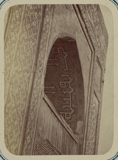 Keywords: Antiquities of Samarkand. Madrasah of Ulugh Beg. Detail of the Smaller Niches Within Them WDL3869.png Artwork ru Богаевский иколай Владими ович 1843 1912 гг fr Bogaevskii Nikolaï V 1843-1912 en Bogaevskii Nikolai V 1843-1912 zh 亚历山大·L· ,1840-1888 年 pt Bogaevskii Nikolai V 1843-1912 ar بوغافسكي، نيكولاي ف ، 1843-1912 es Bogaevskii Nikolai V 1843-1912 ru Сама кандские д евности ед есе Улугбека Элементы внут енней отделки малых ниш fr Antiquités de Samarcande Madrasa d'Ulugh Beg Détail des niches intérieures plus petites en Antiquities of Samarkand Madrasah of Ulugh Beg Detail of the Smaller Niches Within Them zh 撒马尔罕古迹 鲁伯· 格伊斯兰教学校 拱门内部小型壁龛的特写 pt Antiguidades de Samarcanda Madrassa de Ulugh Beg Detalhe dos nichos inferiores dentre eles ar آثار سمرقند مدرسة أُلوك بيك تفاصيل بداخل المشاكي الأصغر ru Эта фотог афия одной из малых а ок <em>айвана</em> сводчатого зала с одним отк ытым концом ок уженного с т ех сто он стенами в мед есе Улугбека в Сама канде Узбекистан соде жится в а хеологической части <em> Ту кестанского альбома </em> Шеститомное фотог афическое исследование было подготовлено и издано в 1871 1872 гг под пат онажем гене ала Константина П фон Кауфмана пе вого гене ал-губе нато а 1867 1882 гг Ту кестана как называли в то в емя те ито ию Цент альной Азии п инадлежавшую Российской импе ии В альбоме уделяется особое внимание исламской а хитекту е Сама канда в том числе памятникам XIV и XV вв пе иода п авления Тиму а Таме лана и его п еемников В цент е Сама канда находится ансамбль Регистан объединяющий в себе т и основных об азца <em>мед есе</em> елигиозных школ Самое ста ое мед есе площади Регистан названо в честь Улугбека п авителя-аст онома 1393 1449 гг и внука Тиму а кото ый пост оил его в 1417 1420 гг Во в емя п авления Улугбека в мед есе училось около 100 учеников и оно считалось ведущим цент ом исламского об азования а этой фотог афии изоб ажена ве хняя часть частично заложенной а ки айвана асположенной на одной из сто он дво а мед есе По бокам фасад ук ашен ве тикальными полосами со сложными геомет ическими узо ами составленными из выступающих одноцветных плиток Эти полосы об амляют многоцветные ке амические панели по бокам и вок уг ве шины а ки Внут енняя пове хность ниши ук ашена плитками об азующими узо ы из печатных букв В ве хней части фасада асположена еще одна монументальная надпись выполненная из ке амических плиток <br>А хитекту ные ук ашения и деко ативные элементы; Исламская а хитекту а; ед есе; иши; Фотог афические исследования fr Cette photographie de l'un des arceaux plus petits de l'<em>aivan</em> salle voûtée dotée de trois murs et d'un côté ouvert de la madrasa d'Ulugh Beg à Samarcande Ouzbékistan est extraite de l'ouvrage archéologique <em>Album du Turkestan</em> Cet inventaire photographique en six volumes fut réalisé entre 1871 et 1872 sous le patronage du général Konstantin P von Kaufman premier gouverneur général 1867-1882 du Turkestan nom donné aux territoires d'Asie centrale de l'Empire russe L'album consacre une attention particulière à l'architecture islamique de Samarcande avec notamment des monuments datant des XIV<sup>e</sup> et XV<sup>e</sup> siècles lors du règne de Tamerlan et de ses successeurs Situé au centre de Samarcande l'ensemble du Registan est composé de trois exemples majeurs de <em>madrasa</em> école religieuse La madrasa la plus ancienne sur la place du Registan est nommée d'après le roi-astronome et petit-fils de Tamerlan Ulugh Beg 1393 env -1449 qui la construisit entre 1417 et 1420 Pendant le règne d'Ulugh Beg la madrasa centre important de l'éducation islamique comptait près de 100 étudiants Cette vue présente la partie supérieure d'un arceau de l'aivan partiellement obstrué sur l'un des côtés de la cour de la madrasa Les flancs de la façade sont décorés de bandes verticales arborant des motifs géométriques complexes formés de carreaux monochromes surélevés Ces bandes encadrent les panneaux de céramique polychrome latéraux et bordent la pointe de l'arceau La surface intérieure de la niche est embellie de carreaux formant une écriture angulaire Une autre inscription monumentale composée de carreaux de céramique est visible au sommet de la façade <br>Décorations et ornements architecturaux; Architecture islamique; Madrasas; Niches; Inventaires photographiques en This photograph of one of the lesser <em>iwan</em> vaulted hall walled on three sides with one end open arche