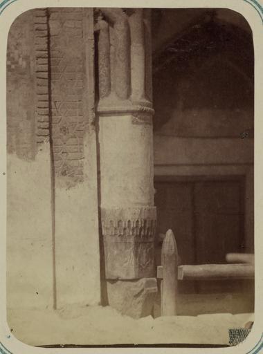 Keywords: Antiquities of Samarkand. Madrasah of Ulugh Beg. Main Facade (Eastern). Base WDL3853.png Artwork ru Богаевский иколай Владими ович 1843 1912 гг fr Bogaevskii Nikolaï V 1843-1912 en Bogaevskii Nikolai V 1843-1912 zh 亚历山大·L· ,1840-1888 年 pt Bogaevskii Nikolai V 1843-1912 ar بوغافسكي، نيكولاي ف ، 1843-1912 es Bogaevskii Nikolai V 1843-1912 ru Сама кандские д евности ед есе Улугбека Главный фасад восточный Основание fr Antiquités de Samarcande Madrasa d'Ulugh Beg Façade principale est Base en Antiquities of Samarkand Madrasah of Ulugh Beg Main Facade Eastern Base zh 撒马尔罕古迹 鲁伯· 格伊斯兰教学校 主立 ( 侧) 基座 pt Antiguidades de Samarcanda Madrassa de Ulugh Beg Fachada principal lado leste Base ar آثار سمرقند مدرسة أُلوك بيك الواجهة الرئيسية الشرقية القاعدة ru Эта фотог афия ф агмента восточного фасада мед есе Улугбека в Сама канде Узбекистан соде жится в а хеологической части <em> Ту кестанского альбома </em> Шеститомное фотог афическое исследование было подготовлено и издано в 1871 1872 гг под пат онажем гене ала Константина П фон Кауфмана пе вого гене ал-губе нато а 1867 1882 гг Ту кестана как называли в то в емя те ито ию Цент альной Азии п инадлежавшую Российской импе ии В альбоме уделяется особое внимание исламской а хитекту е Сама канда в том числе памятникам XIV и XV вв пе иода п авления Тиму а Таме лана и его п еемников В цент е Сама канда находится ансамбль Регистан объединяющий в себе т и основных об азца <em>madrasah</em> мед есе елигиозных школ Самое ста ое мед есе площади Регистан было пост оено в 1417 1420 гг Улугбеком 1393 1449 гг п авителем-аст ономом и внуком Тиму а и названо в его честь За в емя п авления Улугбека в мед есе училось около 100 учеников и оно считалось ведущим цент ом исламского об азования Здесь показан ф агмент левого южного внут еннего угла ог омной входной а ки <em>айвана</em> сводчатого зала с одним отк ытым концом ок уженного с т ех сто он стенами Внизу видно сегменти ованное езное м амо ное основание угловой колонны есмот я на значительные пов еждения на нижнем сте жне колонны видны следы ке амических ук ашений Выше начинается монументальная колонна в виде ск ученной ве евки об амляющая а ку айвана и состоящая из многоцветных ке амических элементов со сложными деко ативными фигу ами Слева видны полосы плитки с геомет ическими узо ами с еди кото ых есть шестиконечные звезды <br>А хитекту ные ук ашения и деко ативные элементы; Исламская а хитекту а; ед есе; Фотог афические исследования fr Cette photographie d'un détail de la façade est de la madrasa d'Ulugh Beg à Samarcande Ouzbékistan est extraite de l'ouvrage archéologique <em>Album du Turkestan</em> Cet inventaire photographique en six volumes fut réalisé entre 1871 et 1872 sous le patronage du général Konstantin P von Kaufman premier gouverneur général 1867-1882 du Turkestan nom donné aux territoires d'Asie centrale de l'Empire russe L'album consacre une attention particulière à l'architecture islamique de Samarcande avec notamment des monuments datant des XIV<sup>e</sup> et XV<sup>e</sup> siècles lors du règne de Tamerlan et de ses successeurs Situé au centre de Samarcande l'ensemble du Registan est composé de trois exemples majeurs de <em>madrasa</em> école religieuse La madrasa la plus ancienne sur la place du Registan porte le nom du roi-astronome et petit-fils de Tamerlan Ulugh Beg vers 1393-1449 qui la construisit entre 1417 et 1420 Pendant le règne d'Ulugh Beg la madrasa était considérée comme un centre important de l'éducation islamique et comptait près de 100 étudiants Cette vue présente un détail de l'angle intérieur gauche sud du grand arceau à l'entrée de l'<em>aivan</em> salle voûtée dotée de trois murs et d'un côté ouvert Dans la partie inférieure la base en marbre de la colonne d'angle sculptée est segmentée Malgré des dommages considérables des vestiges d'ornements de céramique sont visibles sur le fût de colonne inférieur Le début de la colonne monumentale torsadée bordant l'arceau de l'aivan et composée d'éléments en céramique polychrome avec des figures décoratives sophistiquées apparaît dans la partie supérieure de la vue gauche des bandes de carreaux sont ornées de motifs géométriques notamment des étoiles à six branches <br>Décorations et ornements architecturaux; Architecture islamique; Madrasas; Inventaires photographiques en This photograph of a detail from the east facade of the Ulugh Beg Madrasah in Samarkand Uzbekist