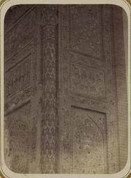 | Keywords: Antiquities of Samarkand. Mausoleum of the Emir Timur Kuragan (Gur-Emir). Inscription along the Sides and inside the Main Entry Niche WDL3723.png Artwork ru Богаевский иколай Владими ович 1843 1912 гг fr Bogaevskii Nikolaï V 1843-1912 en Bogaevskii Nikolai V 1843-1912 zh 亚历山大·L· ,1840-1888 年 pt Bogaevskii Nikolai V 1843-1912 ar بوغافسكي، نيكولاي ف ، 1843-1912 es Bogaevskii Nikolai V 1843-1912 ru Сама кандские д евности авзолей эми а Тиму а Ку агана Гу -Эми адписи по сто онам и внут и главной входной ниши fr Antiquités de Samarcande Mausolée de l'émir Timour Kuragan Gour Emir Inscription le long des côtés et à l'intérieur de la niche de l'entrée principale en Antiquities of Samarkand Mausoleum of the Emir Timur Kuragan Gur-Emir Inscription along the Sides and inside the Main Entry Niche zh 撒马尔罕古迹 埃米尔帖 儿·库拉甘的陵墓(古尔-埃米尔) 主入口壁龛外侧与内侧的铭文 pt Antiguidades de Samarcanda Mausoléu de Tamerlão Gur-Emir Inscrição nas laterais e dentro do nicho da entrada principal ar آثار سمرقند ضريح الأمير تيمور كوراغان گورِ أمير نقش بطول الجانبين وداخل مِشْكاة المدخل الرئيسي ru Эта замечательная фотог афия детали входной а ки во дво мавзолея Гу -Эми в Сама канде Узбекистан соде жится в а хеологической части <em> Ту кестанского альбома </em> Шеститомное фотог афическое исследование было подготовлено и издано в 1871 1872 гг под пат онажем гене ала Константина П фон Кауфмана пе вого гене ал-губе нато а 1867 1882 гг Ту кестана как называли в то в емя те ито ию Цент альной Азии п инадлежавшую Российской импе ии В альбоме уделяется особое внимание исламскому а хитекту ному наследию Сама канда включая Гу -Эми на пе сидском языке означает г обница повелителя Гу -Эми известен в пе вую оче едь как место захо онения Тиму а Таме лана хотя Тиму начал его ст оительство еще в 1403 г в память своего любимого внука ухаммада Султана уме шего в воз асте 27 лет После похо он Тиму а в 1405 г Гу -Эми стал мавзолеем Тиму идов а фотог афии виден п авый угол а ки входной ниши <em>айвана</em> сводчатый зал с одним отк ытым концом ок уженный с т ех сто он стенами Угол выделен п ислоненной ке амической колонной и капителью с многоцветными деко ативными панелями с каждой сто оны Слева от колонны находится п авое к ыло ниши айвана В ст ельчатой а ке на нижней панели видны ботанические фигу ы из многоцветного фаянса об азующие геомет ические узо ы а ве хней панели изоб ажен п ямолинейный геомет ический узо с цветочными элементами Похожая последовательность узо а видна сп ава на главном фасаде Панели об амлены бо дю ами с цветочными мотивами <br>А хитекту ные ук ашения и деко ативные элементы; адписи; Исламская а хитекту а; Фотог афические исследования; огильные памятники; Тиму 1336-1405 гг ; Г обницы fr Cette photographie remarquable des détails de l'arceau d'entrée menant vers la cour du mausolée de Gour Emir à Samarcande Ouzbékistan est extraite de l'ouvrage archéologique <em>Album du Turkestan</em> Cet inventaire photographique en six volumes fut réalisé entre 1871 et 1872 sous le patronage du général Konstantin P von Kaufman premier gouverneur général 1867-1882 du Turkestan nom donné aux territoires d'Asie centrale de l'Empire russe L'album consacre une attention particulière à l'héritage de l'architecture islamique de Samarcande notamment Gour Emir « tombe du souverain » en persan Bien qu'il soit principalement connu comme le lieu de sépulture de Tamerlan Gour Emir fut commencé sous Tamerlan en 1403 pour commémorer la mort de son petit-fils bien-aimé le sultan Mahomet à l'âge de 27 ans Lorsque Tamerlan y fut enterré en 1405 Gour Emir devint le mausolée des Timourides Cette vue présente l'angle droit de l'arceau de l'<em>aivan </em> salle voûtée dotée de trois murs et d'un côté ouvert de la structure d'entrée L'angle est marqué par une colonne de céramique fixée et un chapiteau doté de panneaux de lambris décoratifs polychromes des deux côtés Le flanc droit de la niche de l'aivan est visible à gauche de la colonne Dans le panneau inférieur l'arceau pointu est orné de figures à fleurs de faïence polychrome disposées dans des motifs géométriques Au-dessus le panneau contient un motif géométrique rectiligne avec des éléments floraux droite la façade principale présente une progression similaire Les panneaux de lambris sont bordés de motifs à fleurs <br>Décorations et ornements architecturaux; Inscriptions; Architecture islamique; 