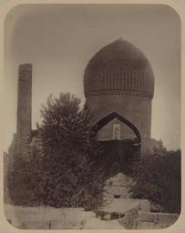 | Keywords: Antiquities of Samarkand. Mausoleum of the Emir Timur Kuragan. View of the Western Facade of the Mausoleum WDL3731.png Artwork ru Богаевский иколай Владими ович 1843 1912 гг fr Bogaevskii Nikolaï V 1843-1912 en Bogaevskii Nikolai V 1843-1912 zh 亚历山大·L· ,1840-1888 年 pt Bogaevskii Nikolai V 1843-1912 ar بوغافسكي، نيكولاي ف ، 1843-1912 es Bogaevskii Nikolai V 1843-1912 ru Сама кандские д евности авзолей эми а Тиму а Ку агана Вид западного фасада мавзолея fr Antiquités de Samarcande Mausolée de l'émir Timour Kuragan Vue de la façade ouest du mausolée en Antiquities of Samarkand Mausoleum of the Emir Timur Kuragan View of the Western Facade of the Mausoleum zh 撒马尔罕古迹 埃米尔帖 儿·库拉甘的陵墓 陵墓西立 景象 pt Antiguidades de Samarcanda Mausoléu do Tamerlão Vista da fachada ocidental do mausoléu ar آثار سمرقند ضريح الأمير تيمور كوراغان منظر لواجهة الضريح الغربية ru Эта фотог афия мавзолея Гу -Эми в Сама канде Узбекистан соде жится в а хеологической части <em> Ту кестанского альбома </em> Шеститомное фотог афическое исследование было подготовлено и издано в 1871 1872 гг под пат онажем гене ала Константина П фон Кауфмана пе вого гене ал-губе нато а 1867 1882 гг Ту кестана как называли в то в емя те ито ию Цент альной Азии п инадлежавшую Российской импе ии В альбоме уделяется особое внимание исламскому а хитекту ному наследию Сама канда включая Гу -Эми на пе сидском языке означает г обница повелителя Гу -Эми известен в пе вую оче едь как место захо онения Тиму а Таме лана хотя Тиму начал его ст оительство еще в 1403 г в память о своем любимом внуке ухаммаде Султане После похо он Тиму а в 1405 г Гу -Эми стал мавзолеем Тиму идов а фотог афии показан вид западной сто оны мавзолея с остатками большой ст ельчатой а ки об амляющей главный фасад Слева виден единственный оставшийся мина ет из пе воначальных четы ех есмот я на се ьезные пов еждения полученные вследствие асположения в активной сейсмической зоне в течение многих веков уцелела цент альная часть ансамбля в том числе ба абан и большой еб истый купол облицованный голубой ке амической плиткой а ба абане видны монументальные ке амические надписи выполненые удлиненным пе сидско-а абским письмом а мина ет по спи али пок ыт куфическим письмом об азующим слова из исламской декла ации ве ы а пе еднем плане стоят дома из высушенного на солнце ки пича <br>Купола; Исламская а хитекту а; Фотог афические исследования; огильные памятники; Тиму 1336-1405 гг ; Г обницы fr Cette photographie du mausolée de Gour Emir à Samarcande Ouzbékistan est extraite de l'ouvrage archéologique <em>Album du Turkestan</em> Cet inventaire photographique en six volumes fut réalisé entre 1871 et 1872 sous le patronage du général Konstantin P von Kaufman premier gouverneur général 1867-1882 du Turkestan nom donné aux territoires d'Asie centrale de l'Empire russe L'album consacre une attention particulière à l'héritage de l'architecture islamique de Samarcande notamment Gour Emir « tombe du souverain » en persan Bien qu'il soit principalement connu comme le lieu de sépulture de Tamerlan Gour Emir fut commencé sous Tamerlan en 1403 pour commémorer la mort de son petit-fils bien-aimé le sultan Mahomet Avec l'enterrement de Tamerlan en 1405 Gour Emir devint en fait le mausolée des Timourides Cette vue de l'ouest du mausolée présente les vestiges d'un grand arceau pointu encadrant la façade principale L'unique minaret encore existant sur les quatre qui furent érigés à l'origine est visible sur la gauche Malgré les dommages considérables subis au cours des siècles dans cette région sismique active la partie centrale de l'ensemble a survécu notamment le tambour et le grand dôme strié avec leur revêtement de carreaux de céramique Le tambour est décoré d'inscriptions monumentales en caractères perso-arabes allongés tandis que le minaret arbore des spirales d'écriture coufique angulaire formant des mots tirés de la profession de foi islamique Des maisons de briques cuites au soleil occupent le premier plan <br>Coupoles; Architecture islamique; Inventaires photographiques; Monuments funéraires; Tamerlan 1336-1405; Tombes en This photograph of the Gur-Emir mausoleum in Samarkand Uzbekistan is from the archeological part of <em>Turkestan Album</em> The six-volume photographic survey was produced in 1871-72 under the patronage of General Konstantin P von Kaufman the first governor-general 1867-82 of Turkestan as the Russian Empire s Central Asian territories were called The album devotes special attention 