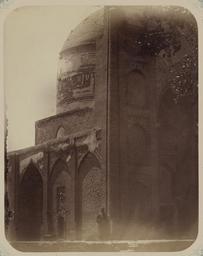 | Keywords: Antiquities of Samarkand. Mosque of Khodzha Abdu-Berun. View of the Mosque from the Northwest WDL3746.png Artwork ru Богаевский иколай Владими ович 1843 1912 гг fr Bogaevskii Nikolaï V 1843-1912 en Bogaevskii Nikolai V 1843-1912 zh 亚历山大·L· ,1840-1888 年 pt Bogaevskii Nikolai V 1843-1912 ar بوغافسكي، نيكولاي ف ، 1843-1912 es Bogaevskii Nikolai V 1843-1912 ru Сама кандские д евности ечеть Ходжа Абду-Бе ун Вид на мечеть с севе о-запада fr Antiquités de Samarcande Mosquée de Khodzha Abdu-Berun Vue de la mosquée depuis le nord-est en Antiquities of Samarkand Mosque of Khodzha Abdu-Berun View of the Mosque from the Northwest zh 撒马尔罕古迹 贾·阿布 -伯伦清 寺 从西北 到的清 寺景象 pt Antiguidades de Samarcanda Mesquita de Khodzha Abdu-Berun Vista noroeste da mesquita ar آثار سمرقند مسجد خواجه عبده-بيرون منظر للمسجد من الجهة الشمالية الغربية ru Эта фотог афия мавзолея мемо иального комплекса Ходжа Абду-Бе ун в Сама канде Узбекистан соде жится в а хеологической части <em> Ту кестанского альбома </em> Шеститомное фотог афическое исследование было подготовлено и издано в 1871 1872 гг под пат онажем гене ала Константина П фон Кауфмана пе вого гене ал-губе нато а 1867 1882 гг Ту кестана как называли в то в емя те ито ию Цент альной Азии п инадлежавшую Российской импе ии В альбоме уделяется особое внимание исламскому а хитекту ному наследию Сама канда емо иальный комплекс Ходжа Абду-Бе ун <em>ханака</em> посвящен почитаемому в IX веке а абскому судье из клана Абди Слово <em>бе ун</em> внешний добавлено в название для указания на асположение комплекса ядом с кладбищем на ок аине Сама канда а также для того чтобы отличить его от д угого посвященного муд ецу комплекса кото ый был асположен в п еделах го ода Хотя на исходном фотог афическом снимке здание названо мечетью на самом деле оно п едставляет собой ханаку с мавзолеем <em>маза </em> пост оенные в пе вой половине XVII века ади ом Диван-Беги визи ем буха ского п авителя Имам-Кули Хана а фотог афии виден фасад с а кой <em>айвана</em> сводчатый зал с одним отк ытым концом ок уженный с т ех сто он стенами в тени и боковой фасад с глухой а кадой Здание венчается цилинд ом и куполом есмот я на обши ные пов еждения в ве хней части фасада видны ф агменты многоцветных ке амических ук ашений а по цилинд у п оходит ши окая полоса с надписью <br>Исламская а хитекту а; ечети; Фотог афические исследования fr Cette photographie du mausolée du grand ensemble commémoratif de Khodzha Abdu-Berun à Samarcande Ouzbékistan est extraite de l'ouvrage archéologique <em>Album du Turkestan</em> Cet inventaire photographique en six volumes fut réalisé entre 1871 et 1872 sous le patronage du général Konstantin P von Kaufman premier gouverneur général 1867-1882 du Turkestan nom donné aux territoires d'Asie centrale de l'Empire russe L'album consacre une attention particulière à l'héritage de l'architecture islamique de Samarcande Le grand ensemble commémoratif de Khodzha Abdu-Berun <em>khanaka</em> fut dédié à un juge arabe vénéré du IX<sup>e</sup> siècle du clan d'Abdi Le mot <em>berun</em> extérieur a été ajouté pour indiquer son emplacement jouxtant un cimetière à la périphérie de Samarcande et pour le distinguer d'un autre grand ensemble situé à l'intérieur de la ville commémorant le sage Bien que la légende d'origine de la photographie identifie la structure comme une mosquée il s'agit plus précisément d'une khanaka comportant un mausolée <em>mazar</em> qui fut construite au cours de la première moitié du XVII<sup>e</sup> siècle par Nadir Divan-Begi vizir du souverain de Boukhara Imam-Quli Khan Cette vue présente la façade contenant l'arceau dans l'ombre de l'<em>aivan </em> salle voûtée dotée de trois murs et d'un côté ouvert et la façade dotée d'arcades aveugles La structure est dominée par un cylindre et un dôme Malgré des dommages considérables des fragments de décoration en céramique polychrome ornent encore les parties supérieures de la façade et le cylindre qui arbore une grande bande d'inscription <br>Architecture islamique; Mosquées; Inventaires photographiques en This photograph of the mausoleum at the Khodzha Abdu-Berun memorial complex in Samarkand Uzbekistan is from the archeological part of <em>Turkestan Album</em> The six-volume photographic survey was produced in 1871-72 under the patronage of General Konstantin P von Kaufman the first governor-general 1867-82 of Turkestan as the Russian Empire s Central Asian territories were called The album devotes special attention to Samarkand s Islamic architectural heritage The Khodzha A