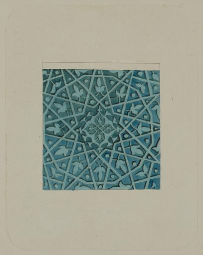 Keywords: Antiquities of Samarkand. Tomb of the Saint Kusam-ibn-Abbas (Shah-i Zindah) and Adjacent Mausoleums. Mausoleum of Sha Arap. Section of Wall Detail inside the Mausoleum WDL3917.png Artwork ru Шостак Л  А fr Shostak L A en Shostak L A zh L A ·斯塔克 pt Shostak L A ar شوستاك، ل أ es Shostak L A ru Сама кандские д евности Г обница святого Куссама ибн Абасса Шах-Зиндэ и мавзолеи п и ней авзолей Ша-А ап Часть отделки стен внут и мавзолея fr Antiquités de Samarcande Sépulcre de Kusam-ibn-Abbas Shah-i Zindah et mausolées adjacents Mausolée de Sha Arap Section d un détail du mur à l intérieur du mausolée en Antiquities of Samarkand Tomb of the Saint Kusam-ibn-Abbas Shah-i Zindah and Adjacent Mausoleums Mausoleum of Sha Arap Section of Wall Detail inside the Mausoleum zh 撒马尔罕古迹 库萨姆-伊 -阿巴斯之墓(夏伊辛达)及其邻近陵墓 沙·阿拉普的陵墓 陵墓内部墙壁部分细节 pt Antiguidades de Samarcanda Túmulo do Santo Kusam-ibn-Abbas Shah-i Zindah e mausoléus adjacentes Mausoléu de Sha Arap Seção de detalhe da parede dentro do mausoléu ar آثار سمرقند ضَرِيح الوَلِيّ قثم بن عباس شاه زنده والأضرحة المجاورة ضريح شاء آراب جزء من أحد تفاصيل جدار داخل الضريح ru а этом аква ельном исунке изоб ажена часть внут енней отделки севе о-восточного мавзолея асположенного в севе ной г уппе усыпальниц нек ополя Шах-Зиндэ Сама канд Узбекистан Данный исунок соде жится в а хеологической части <em> Ту кестанского альбома </em> шеститомного исследования п оведенного и изданного в 1871 1872 гг под пат онажем гене ала Константина П фон Кауфмана пе вого гене ал-губе нато а 1867 1882 гг Ту кестана как называли в то в емя те ито ию Цент альной Азии п инадлежавшую Российской импе ии В альбоме уделяется особое внимание исламской а хитекту е Сама канда в том числе памятникам XIV и XV вв пе иода п авления Тиму а Таме лана и его п еемников Особенно следует отметить ансамбль Шах-Зиндэ на пе сидском языке означает живой ца ь кото ый пост оен на возвышенности бывшей местом д евнего поселения известного как Аф асиаб Шах-Зиндэ почитается как мемо иал Куссама ибн Абасса двою одного б ата п о ока ухаммада Заказчик мавзолея окончательно не оп еделен однако известно что мавзолей был пост оен в 1360 1361 гг ве оятно для пог ебения девушки из знатного ода Че ез об ушившийся купол мавзолея отчетливо видны внут енние стены пок ытые множеством многоцветных ке амических ук ашений с о наментом из геомет ических цветочных и буквенных узо ов Изоб аженный на исунке ф агмент южной стены ук ашен пе еплетающимися звездами с фигу ой из четы ех листовидных элементов в цент е П и создании исунка о игинальный узо был дополнен завитками внут и двенадцатиугольника <br>А хитекту ные ук ашения и деко ативные элементы; Исламская а хитекту а; огильные памятники; Шах-Зиндэ; Г обницы; Аква ельные исунки fr Cette esquisse à l aquarelle d'un détail ornemental de l'intérieur du mausolée nord-est situé dans l'ensemble septentrional des sanctuaires de la nécropole de Shah-i Zindah à Samarcande Ouzbékistan est extraite de l'ouvrage archéologique <em>Album du Turkestan</em> Cet inventaire photographique en six volumes fut réalisé entre 1871 et 1872 sous le patronage du général Konstantin P von Kaufman premier gouverneur général 1867-1882 du Turkestan nom donné aux territoires d'Asie centrale de l'Empire russe L'album consacre une attention particulière à l'architecture islamique de Samarcande avec notamment des monuments datant des XIV<sup>e</sup> et XV<sup>e</sup> siècles lors du règne de Tamerlan et de ses successeurs Il convient de souligner que l'ensemble de Shah-i Zindah « roi vivant » en persan fut construit sur le site élevé d'une ancienne colonie connue sous le nom d'Afrosiabe et qu'il était dédié à la vénération de Kusam-ibn-Abbas cousin du prophète Mahomet Bien que le commanditaire de ce mausolée n'ait pas été identifié avec certitude on a pu déterminer qu'il fut bâti entre 1360 et 1361 probablement pour une jeune fille de naissance noble L effondrement du dôme du mausolée permet d avoir une vue dégagée sur les murs intérieurs couverts d ornements somptueux en céramique polychrome composés de motifs à fleurs géométriques et épigraphiques Ce fragment du mur sud affiche un motif d étoiles entrelacées avec un motif de feuillages à quatre lobes dans le centre Le dessin principal est enrichi par un motif de vrille à l intérieur d un dodécagone <br>Décorations et 