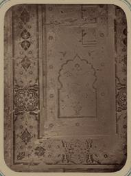 | Keywords: Antiquities of Samarkand. Tomb of the Saint Kusam-ibn-Abbas (Shah-i Zindah) and Adjacent Mausoleums. Mausoleum of Aine Khane (Emir Mussa). Section of Detail on the Facade WDL3623.png Artwork ru Богаевский иколай Владими ович 1843 1912 гг fr Bogaevskii Nikolaï V 1843-1912 en Bogaevskii Nikolai V 1843-1912 zh 亚历山大·L· ,1840-1888 年 pt Bogaevskii Nikolai V 1843-1912 ar بوغافسكي، نيكولاي ف ، 1843-1912 es Bogaevskii Nikolai V 1843-1912 ru Сама кандские д евности Г обница святого Куссама ибн Абасса Шах-Зиндэ и мавзолеи п и ней авзолей Айнэ-Ханэ эми а уссы Часть отделки фасада fr Antiquités de Samarcande Sépulcre de Kusam-ibn-Abbas Shah-i Zindah et mausolées adjacents Mausolée d'Aine Khane émir Mussa Section d'un détail de la façade en Antiquities of Samarkand Tomb of the Saint Kusam-ibn-Abbas Shah-i Zindah and Adjacent Mausoleums Mausoleum of Aine Khane Emir Mussa Section of Detail on the Facade zh 撒马尔罕古迹 库萨姆-伊 -阿巴斯之墓(夏伊辛达)及其邻近陵墓 艾内·克哈内(埃米尔·穆萨)陵墓 部分立 细节 pt Antiguidades de Samarcanda Túmulo do Santo Kusam-ibn-Abbas Shakhi Zinda e mausoléus adjacentes Mausoléu de Aine Khane Emir Mussa Seção de um detalhe da fachada ar آثار سمرقند ضَرِيح الوَلِيّ قثم بن عباس شاه زنده والأضرحة المجاورة ضريح عين خان الأمير موسى جزء من تفاصيل بالواجهة ru Эта фотог афия элемента фасада мавзолея Туман-Ака в нек ополе Шах-Зиндэ в Сама канде соде жится в а хеологической части <em> Ту кестанского альбома </em> Шеститомное фотог афическое исследование было подготовлено и издано в 1871 1872 гг под пат онажем гене ала Константина П фон Кауфмана пе вого гене ал-губе нато а 1867 1882 гг Ту кестана как называли в то в емя те ито ию Цент альной Азии п инадлежавшую Российской импе ии В альбоме уделяется особое внимание исламской а хитекту е Сама канда в том числе памятникам XIV и XV вв пе иода п авления Таме лана и его п еемников Особенно следует отметить ансамбль Шах-Зиндэ на пе сидском языке означает живой ца ь кото ый почитается как мемо иал Куссама ибн Абасса двою одного б ата п о ока ухаммада авзолей и мечеть Туман-Ака пост оенные в 1405 г как мемо иал в честь младшей жены Таме лана асположены слева от <em>ча така</em> в севе ной г уппе г обниц Ансамбль выделяется я кими ке амическими ук ашениями с цветочными и геомет ическими узо ами а также надписями кото ые по цвету ва ьи уются от темно-голубого до желтого фиолетового и би юзового Этот элемент асположен снизу сп ава от а ки мавзолея <em>пештак</em> В цент е находится фаянсовая панель со сложным цветочным узо ом в темной амке окаймленная ве тикальными полосами с цветочными мотивами ад панелью видны следы надписи а абским письмом в стиле сулюс <br>А хеологические объекты; А хитекту ные ук ашения и деко ативные элементы; Исламская а хитекту а; Фотог афические исследования; огильные памятники; Шах-Зиндэ; Г обницы fr Cette photographie d'un détail de façade du mausolée de Tuman-Aka de la nécropole de Shah-i Zindah à Samarcande est extraite de l'ouvrage archéologique <em>Album du Turkestan</em> Cet inventaire photographique en six volumes fut réalisé entre 1871 et 1872 sous le patronage du général Konstantin P von Kaufman premier gouverneur général 1867-1882 du Turkestan nom donné aux territoires d'Asie centrale de l'Empire russe L'album consacre une attention particulière à l'architecture islamique de Samarcande avec notamment des monuments datant des XIV<sup>e</sup> et XV<sup>e</sup> siècles lors du règne de Tamerlan et de ses successeurs L'ensemble de Shah-i Zindah « roi vivant » en persan est un mémorial dédié à la vénération de Kusam-ibn-Abbas cousin du prophète Mahomet Bâtis en 1405 comme mémorial dédié à la plus jeune épouse de Tamerlan le mausolée et la mosquée de Tuman-Aka sont situés à gauche du <em>chartak</em> au nord des sanctuaires L'ensemble est remarquable pour ses ornements en céramique exceptionnels composés de motifs à fleurs géométriques et épigraphiques avec des couleurs incluant le bleu foncé le jaune le violet et le bleu turquoise Cette vue présente un détail de la partie inférieure droite de l'arceau du mausolée <em>peshtak</em> Au centre un panneau de faïence contient des motifs à fleurs sophistiqués disposés dans un cadre foncé et bordés de bandes verticales également décorées de motifs à fleurs Les vestiges d'une inscription arabe en style thoulouth sont visibles au-dessus du panneau <br>Sites archéologiques; Décorations et ornements architecturaux;