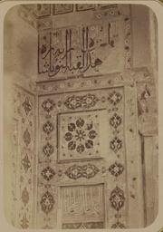 | Keywords: Antiquities of Samarkand. Tomb of the Saint Kusam-ibn-Abbas (Shah-i Zindah) and Adjacent Mausoleums. Mausoleum of the Aine Khane (Emir Mussa). Inscriptions on the Upper Left Panel of the Niche WDL3627.png Artwork ru Богаевский иколай Владими ович 1843 1912 гг fr Bogaevskii Nikolaï V 1843-1912 en Bogaevskii Nikolai V 1843-1912 zh 亚历山大·L· ,1840-1888 年 pt Bogaevskii Nikolai V 1843-1912 ar بوغافسكي، نيكولاي ف ، 1843-1912 es Bogaevskii Nikolai V 1843-1912 ru Сама кандские д евности Г обница святого Куссама ибн Абасса Шах-Зиндэ и мавзолеи п и ней авзолей Айнэ-Ханэ эми а уссы адписи на ве хней левой панели ниши fr Antiquités de Samarcande Sépulcre de Kusam-ibn-Abbas Shah-i Zindah et mausolées adjacents Mausolée d'Aine Khane émir Mussa Inscriptions sur le panneau supérieur gauche de la niche en Antiquities of Samarkand Tomb of the Saint Kusam-ibn-Abbas Shah-i Zindah and Adjacent Mausoleums Mausoleum of the Aine Khane Emir Mussa Inscriptions on the Upper Left Panel of the Niche zh 撒马尔罕古迹 库萨姆-伊 -阿巴斯之墓(夏伊辛达)及其邻近陵墓 艾内·克哈内(埃米尔·穆萨)陵墓 壁龛左上方嵌 上的铭文 pt Antiguidades de Samarcanda Túmulo do Santo Kusam-ibn-Abbas Shakhi Zinda e mausoléus adjacentes Mausoléu de Aine Khane Emir Mussa Inscrição no painel esquerdo superior do nicho de entrada ar آثار سمرقند ضَرِيح الوَلِيّ قثم بن عباس شاه زنده والأضرحة المجاورة ضريح عين خان الأمير موسى نقوش على اللوحة اليسرى العليا للمِشْكاة ru Эта фотог афия деко ативной ке амики на мавзолее Туман-Ака в нек ополе Шах-Зиндэ в Сама канде соде жится в а хеологической части <em> Ту кестанского альбома </em> Шеститомное фотог афическое исследование было подготовлено и издано в 1871 1872 гг под пат онажем гене ала Константина П фон Кауфмана пе вого гене ал-губе нато а 1867 1882 гг Ту кестана как называли в то в емя те ито ию Цент альной Азии п инадлежавшую Российской импе ии В альбоме уделяется особое внимание исламской а хитекту е Сама канда в том числе памятникам XIV и XV вв пе иода п авления Таме лана и его п еемников Особенно следует отметить ансамбль Шах-Зиндэ на пе сидском языке означает живой ца ь кото ый почитается как мемо иал Куссама ибн Абасса двою одного б ата п о ока ухаммада авзолей и мечеть Туман-Ака пост оенные в 1405 г как мемо иал в честь младшей жены Таме лана асположены слева от <em>ча така</em> в севе ной г уппе г обниц Ансамбль выделяется я кими ке амическими ук ашениями с цветочными и геомет ическими узо ами а также надписями кото ые по цвету ва ьи уются от темно-голубого до желтого фиолетового и би юзового Этот элемент панели асположен на п авой сто оне ниши об азованной а кой мавзолея <em>пештак</em> В ве хней и нижней части находятся изящные надписи выполненные а абским письмом в стиле сулюс В цент е виден геомет ический цветочный узо с восемью лепестками об амленный полосами с соединенными деко ативными фигу ами <br>А хеологические объекты; А хитекту ные ук ашения и деко ативные элементы; адписи; Исламская а хитекту а; Фотог афические исследования; огильные памятники; Шах-Зиндэ; Г обницы fr Cette photographie des céramiques décorant le mausolée de Tuman-Aka situé dans la nécropole de Shah-i Zindah à Samarcande est extraite de l'ouvrage archéologique <em>Album du Turkestan</em> Cet inventaire photographique en six volumes fut réalisé entre 1871 et 1872 sous le patronage du général Konstantin P von Kaufman premier gouverneur général 1867-1882 du Turkestan nom donné aux territoires d'Asie centrale de l'Empire russe L'album consacre une attention particulière à l'architecture islamique de Samarcande avec notamment des monuments datant des XIV<sup>e</sup> et XV<sup>e</sup> siècles lors du règne de Tamerlan et de ses successeurs L'ensemble de Shah-i Zindah « roi vivant » en persan est un mémorial dédié à la vénération de Kusam-ibn-Abbas cousin du prophète Mahomet Bâtis en 1405 comme mémorial dédié à la plus jeune épouse de Tamerlan le mausolée et la mosquée de Tuman-Aka sont situés à gauche du <em>chartak</em> au nord des sanctuaires L'ensemble est remarquable pour ses ornements en céramique exceptionnels composés de motifs à fleurs géométriques et épigraphiques avec des couleurs incluant le bleu foncé le jaune le violet et le bleu turquoise Cette vue présente un détail du panneau sur le côté droit de la niche formée par l'arceau du mausolée <em>peshtak</em> D'élégantes inscription