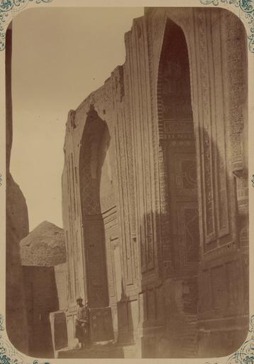 | Keywords: Antiquities of Samarkand. Tomb of Saint Kusam-ibn-Abbas (Shah-i Zindah) and Adjacent Mausoleums. Mausoleum of Chuchun Bek WDL3632.png Artwork ru Богаевский иколай Владими ович 1843 1912 гг fr Bogaevskii Nikolaï V 1843-1912 en Bogaevskii Nikolai V 1843-1912 zh 亚历山大·L· ,1840-1888 年 pt Bogaevskii Nikolai V 1843-1912 ar بوغافسكي، نيكولاي ف ، 1843-1912 es Bogaevskii Nikolai V 1843-1912 ru Сама кандские д евности Г обница святого Куссама ибн Абасса Шах-Зиндэ и мавзолеи п и ней авзолей Чучун-Бека Вид с севе а на мавзолеи Чучун-Бека и Кутулука Ту ди Бека Ака fr Antiquités de Samarcande Sépulcre de Kusam-ibn-Abbas Shah-i Zindah et mausolées adjacents Mausolée de Chuchun Bek Vue depuis le nord vers les mausolées de Chuchun Bek et Kutuluk Turdi Bek Aka en Antiquities of Samarkand Tomb of Saint Kusam-ibn-Abbas Shah-i Zindah and Adjacent Mausoleums Mausoleum of Chuchun Bek View from the North Toward the Mausoleums of Chuchun Bek and Kutuluk Turdi Bek Aka zh 撒马尔罕古迹 库萨姆-伊 -阿巴斯之墓(夏伊辛达)及其邻近陵墓 楚楚恩· 克的陵墓 从北 到的楚楚恩· 克陵墓和库图卢克·吐尔迪· 克·阿卡陵墓的景象 pt Antiguidades de Samarcanda Túmulo do Santo Kusam-ibn-Abbas Shakhi Zinda e mausoléus adjacentes Mausoléu de Chuchun Bek Imagem dos mausoléus de Chuchun Bek e Kutuluk Turdi Bek Aka vista desde o norte ar آثار سمرقند ضَرِيح الوَلِيّ قثم بن عباس شاه زنده والأضرحة المجاورة ضريح تشوشون بيك منظر من الشمال في اتجاه أضرحة تشوشون بيك وكُتُلغ تُرْدِى بَكْ-أغا ru Эта фотог афия мавзолеев нек ополя Шах-Зиндэ в Сама канде соде жится в а хеологической части <em> Ту кестанского альбома </em> Шеститомное фотог афическое исследование было подготовлено и издано в 1871 1872 гг под пат онажем гене ала Константина П фон Кауфмана пе вого гене ал-губе нато а 1867 1882 гг Ту кестана как называли в то в емя те ито ию Цент альной Азии п инадлежавшую Российской импе ии Основными составителями фотомате иалов стали п икоманди ованный к а мии востоковед Александ Людвигович Кун и военный инжене иколай Владими ович Богаевский Они уделяли особое внимание исламской а хитекту е Сама канда в том числе памятникам XIV и XV вв пе иода п авления Таме лана и его п еемников Тиму идов Шах-Зиндэ на пе сидском языке означает живой ца ь пост оенный на д евнем захо онении почитается как мемо иал Куссама ибн Абасса двою одного б ата п о ока ухаммада Два изоб аженных здесь мавзолея асположены на ве шине лестницы идущей от главного входа Снимок сделан с узкого ве хнего п охода нек ополя с видом на юг Слева находится мавзолей Эми -Заде 1386 г а за ним виден мавзолей Шади- ульк-Ака племянницы Таме лана также известной как Ту кан-Ака 1372 г Изысканные ук ашения из ке амических плиток в том числе узо чатая а абская надпись сох анились относительно хо ошо однако над а кой Эми -Заде видны значительные пов еждения В левой части на заднем плане виден мавзолей с двумя куполами <br>Исламская а хитекту а; Фотог афические исследования; огильные памятники; Шах-Зиндэ; Г обницы fr Cette vue des mausolées de la nécropole de Shah-i Zindah à Samarcande est extraite de l'ouvrage archéologique <em>Album du Turkestan</em> Cet inventaire photographique en six volumes fut réalisé entre 1871 et 1872 sous le patronage du général Konstantin P von Kaufman premier gouverneur général 1867-1882 du Turkestan nom donné aux territoires d'Asie centrale de l'Empire russe Les documents visuels furent essentiellement compilés par Aleksandr L Kun orientaliste rattaché à l'armée et Nikolai V Bogaevskii ingénieur militaire Ces derniers consacrèrent une attention particulière à l'architecture islamique de Samarcande avec notamment des monuments datant des XIV<sup>e</sup> et XV<sup>e</sup> siècles lors du règne de Tamerlan et de ses successeurs les Timourides Construit sur le site d'un ancien cimetière l'ensemble de Shah-i Zindah « roi vivant » en persan est un mémorial dédié à la vénération de Kusam-ibn-Abbas cousin du prophète Mahomet La vue présentée ici montre les deux mausolées situés au sommet des escaliers de l'entrée principale Elle fut prise face au sud depuis l'intérieur de l'étroit passage supérieur de la nécropole Le mausolée de l'émir Zade 1386 apparaît au centre avec à sa droite le mausolée de Shadi Mulk Aka nièce de Tamerlan également appelée Turkan-Aka 1372 Bien que leurs ornements de carreaux de céramique sophistiqués notamment une écriture arabe avec des motifs aient été relativement 