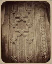| Keywords: Antiquities of Samarkand. Tomb of the Saint Kusam-ibn-Abbas (Shah-i Zindah) and Adjacent Mausoleums. Mausoleum of Abu Tengi. Inscription on the Left Side of the Facade (Top) WDL3645.png Artwork ru Богаевский иколай Владими ович 1843 1912 гг fr Bogaevskii Nikolaï V 1843-1912 en Bogaevskii Nikolai V 1843-1912 zh 亚历山大·L· ,1840-1888 年 pt Bogaevskii Nikolai V 1843-1912 ar بوغافسكي، نيكولاي ف ، 1843-1912 es Bogaevskii Nikolai V 1843-1912 ru Сама кандские д евности Г обница святого Куссама ибн Абасса Шах-Зиндэ и мавзолеи п и ней авзолей эми а Абу-Тенги адпись на левой сто оне фасада ве х fr Antiquités de Samarcande Sépulcre de Kusam-ibn-Abbas Shah-i Zindah et mausolées adjacents Mausolée d'Abu Tengi Inscription sur le côté gauche de la façade partie supérieure en Antiquities of Samarkand Tomb of the Saint Kusam-ibn-Abbas Shah-i Zindah and Adjacent Mausoleums Mausoleum of Abu Tengi Inscription on the Left Side of the Facade Top zh 撒马尔罕古迹 库萨姆-伊 -阿巴斯之墓(夏伊辛达)及其邻近陵墓 阿布·腾吉的陵墓 立 (顶部)左侧铭文 pt Antiguidades de Samarcanda Túmulo do Santo Kusam-ibn-Abbas Shakhi Zinda e mausoléus adjacentes Mausoléu de Abu Tengi Inscrição no lado esquerdo da fachada Parte superior ar آثار سمرقند ضَرِيح الوَلِيّ قثم بن عباس شاه زنده والأضرحة المجاورة ضريح أبو تنجي نقش على الجانب الأيسر للواجهة بالأعلى ru Эта фотог афия мавзолея Усто Али в нек ополе Шах-Зиндэ в Сама канде соде жится в а хеологической части <em> Ту кестанского альбома </em> Шеститомное фотог афическое исследование было подготовлено и издано в 1871 1872 гг под пат онажем гене ала Константина П фон Кауфмана пе вого гене ал-губе нато а 1867 1882 гг Ту кестана как называли в то в емя те ито ию Цент альной Азии п инадлежавшую Российской импе ии В альбоме уделяется особое внимание исламской а хитекту е Сама канда в том числе памятникам XIV и XV вв пе иода п авления Таме лана и его п еемников Шах-Зиндэ на пе сидском языке означает живой ца ь почитается как мемо иал Куссама ибн Абасса двою одного б ата п о ока ухаммада Заказчик этого мавзолея пост оенного около 1380 г неизвестен авзолей часто называют по имени главного ст оителя Усто Али есефи Большая часть фасада п ете пела значительные пов еждения однако сох анившиеся ук ашения п едставляют собой одни из самых изысканных деко ативных элементов во всем нек ополе Ке амические ук ашения выполнены из многоцветной плитки майолики в геомет ических узо ах включая ве тикальные полосы с а абским письмом в куфическом стиле и стиле сулюс Эти азнооб азные ук ашения об амлены узкими полосами с куфическими надписями кото ые пе есекаются и об азуют восьмиконечную звезду Хотя большие сегменты асположенные ближе к ве ху отсутствуют на внешних полосах по обеим сто онам видны лиственные мотивы и сложный пе еплетающийся о намент <br>А хитекту ные ук ашения и деко ативные элементы; Исламская а хитекту а; Фотог афические исследования; огильные памятники; Шах-Зиндэ; Г обницы fr Cette photographie du mausolée Usto Ali situé dans la nécropole de Shah-i Zindah à Samarcande est extraite de l'ouvrage archéologique <em>Album du Turkestan</em> Cet inventaire photographique en six volumes fut réalisé entre 1871 et 1872 sous le patronage du général Konstantin P von Kaufman premier gouverneur général 1867-1882 du Turkestan nom donné aux territoires d'Asie centrale de l'Empire russe L'album consacre une attention particulière à l'architecture islamique de Samarcande avec notamment des monuments datant des XIV<sup>e</sup> et XV<sup>e</sup> siècles lors du règne de Tamerlan et de ses successeurs L'ensemble de Shah-i Zindah « roi vivant » en persan est un mémorial dédié à la vénération de Kusam-ibn-Abbas cousin du prophète Mahomet Le commanditaire de ce mausolée construit en 1380 environ étant inconnu ce dernier est souvent appelé par le nom de son maître d'œuvre Usto Ali Nesefi Malgré les dommages considérables sur la majeure partie de la façade les vestiges des ornements révèlent qu'il s'agissait de l'une des décorations les plus sophistiquées de toute la nécropole Les céramiques incluent des carreaux de majolique polychromes formant des motifs géométriques ainsi que des bandes verticales contenant une écriture arabe de styles thoulouth et kufique Ces ornements sont encadrés de bandes étroites pourvues d'inscriptions kufiques angulaires s'entrecroisant pour former une étoile à huit br