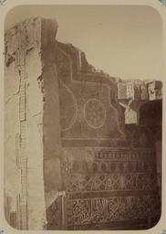 | Keywords: Antiquities of Samarkand. Tomb of the Saint Kusam-ibn-Abbas (Shah-i Zindah) and Adjacent Mausoleums. Mausoleum of Emir Assad. View of the Preserved Upper Section of the Entry Niche WDL3651.png Artwork ru Богаевский иколай Владими ович 1843 1912 гг fr Bogaevskii Nikolaï V 1843-1912 en Bogaevskii Nikolai V 1843-1912 zh 亚历山大·L· ,1840-1888 年 pt Bogaevskii Nikolai V 1843-1912 ar بوغافسكي، نيكولاي ف ، 1843-1912 es Bogaevskii Nikolai V 1843-1912 ru Сама кандские д евности Г обница святого Куссама ибн Абасса Шах-Зиндэ и мавзолеи п и ней авзолей эми а Ассада Изоб ажение сох анившейся ве хней части входной ниши fr Antiquités de Samarcande Sépulcre de Kusam-ibn-Abbas Shah-i Zindah et mausolées adjacents Mausolée de l'émir Assad Vue de la section supérieure préservée de la niche d'entrée en Antiquities of Samarkand Tomb of the Saint Kusam-ibn-Abbas Shah-i Zindah and Adjacent Mausoleums Mausoleum of Emir Assad View of the Preserved Upper Section of the Entry Niche zh 撒马尔罕古迹 库萨姆-伊 -阿巴斯之墓(夏伊辛达)及其邻近陵墓 埃米尔·阿萨德的陵墓 现存入口壁龛上半部分 pt Antiguidades de Samarcanda Túmulo do Santo Kusam-ibn-Abbas Shakhi Zinda e mausoléus adjacentes Mausoléu do Emir Assad Imagem da seção superior preservada do nicho de entrada ar آثار سمرقند ضَرِيح الوَلِيّ قثم بن عباس شاه زنده والأضرحة المجاورة ضريح الأمير أسد منظر للجزء العلوي ذي الحالة الجيدة من مِشْكاة المدخل ru Эта фотог афия безымянного мавзолея в нек ополе Шах-Зиндэ в Сама канде соде жится в а хеологической части <em> Ту кестанского альбома </em> Шеститомное фотог афическое исследование было подготовлено и издано в 1871 1872 гг под пат онажем гене ала Константина П фон Кауфмана пе вого гене ал-губе нато а 1867 1882 гг Ту кестана как называли в то в емя те ито ию Цент альной Азии п инадлежавшую Российской импе ии В альбоме уделяется особое внимание исламской а хитекту е Сама канда в том числе памятникам XIV и XV вв пе иода п авления Таме лана и его п еемников Особенно следует отметить ансамбль Шах-Зиндэ на пе сидском языке означает живой ца ь кото ый почитается как мемо иал Куссама ибн Абасса двою одного б ата п о ока ухаммада С еди г обниц нек ополя находится безымянный мавзолей основное здание кото ого аз ушено Сох анившиеся части фасада п едставляют собой сложную деко ативную пове хность похожую на отделку соседнего мавзолея Усто Али около 1380 г а этом снимке показана левая сто она ниши об азованной ог омной а кой фасада Разнооб азные ке амические ук ашения сочетают многоцветную полосу с а абским письмом в укописном стиле сулюс; полосу плитки майолики с ельефными линиями об азующими пе ек естный геомет ический исунок; деко ативные полосы с лиственными и геомет ическими узо ами; сложные фаянсовые панели с цветочными мотивами а также вве ху сп ава остатки деко ативного свода с сотовой пове хностью <em>mocárabe</em> над входом <br>А хитекту ные ук ашения и деко ативные элементы; Исламская а хитекту а; Фотог афические исследования; огильные памятники; Шах-Зиндэ; Г обницы fr Cette photographie d'un mausolée non identifié situé dans la nécropole de Shah-i Zindah à Samarcande est extraite de l'ouvrage archéologique <em>Album du Turkestan</em> Cet inventaire photographique en six volumes fut réalisé entre 1871 et 1872 sous le patronage du général Konstantin P von Kaufman premier gouverneur général 1867-1882 du Turkestan nom donné aux territoires d'Asie centrale de l'Empire russe L'album consacre une attention particulière à l'architecture islamique de Samarcande avec notamment des monuments datant des XIV<sup>e</sup> et XV<sup>e</sup> siècles lors du règne de Tamerlan et de ses successeurs L'ensemble de Shah-i Zindah « roi vivant » en persan est un mémorial dédié à la vénération de Kusam-ibn-Abbas cousin du prophète Mahomet Parmi les sanctuaires de la nécropole la structure de base d'un mausolée non identifié s'est effondrée Les parties de façade encore existantes aujourd'hui révèlent des décorations complexes semblables à celles du mausolée d'Usto Ali à proximité en 1380 environ Cette vue présente le côté gauche de la niche formée par le grand arceau de la façade Les ornements en céramique incluent notamment une bande polychrome contenant une écriture arabe cursive en style thoulouth une bande de carreaux de majolique avec des lignes en relief formant des dessins géométriques de croisemen