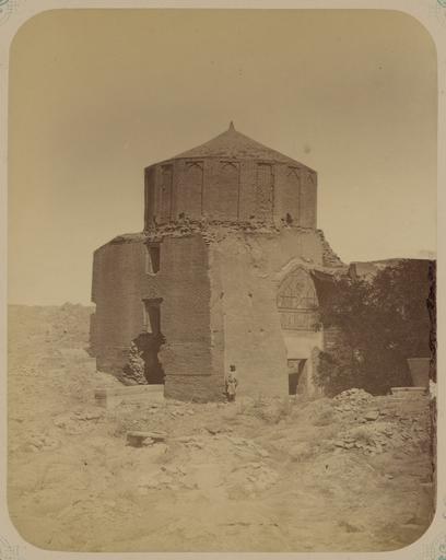 Keywords: Antiquities of Samarkand. Tomb of the Saint Kusam-ibn-Abbas (Shah-i Zindah) and Adjacent Mausoleums. Mausoleum of Emir Burunduk WDL3652.png Artwork ru Богаевский иколай Владими ович 1843 1912 гг fr Bogaevskii Nikolaï V 1843-1912 en Bogaevskii Nikolai V 1843-1912 zh 亚历山大·L· ,1840-1888 年 pt Bogaevskii Nikolai V 1843-1912 ar بوغافسكي، نيكولاي ف ، 1843-1912 es Bogaevskii Nikolai V 1843-1912 ru Сама кандские д евности Г обница святого Куссама ибн Абасса Шах-Зиндэ и мавзолеи п и ней авзолей эми а Бу ундука fr Antiquités de Samarcande Sépulcre de Kusam-ibn-Abbas Shah-i Zindah et mausolées adjacents Mausolée de l'émir Burunduk en Antiquities of Samarkand Tomb of the Saint Kusam-ibn-Abbas Shah-i Zindah and Adjacent Mausoleums Mausoleum of Emir Burunduk zh 撒马尔罕古迹 库萨姆-伊 -阿巴斯之墓(夏伊辛达)及其邻近陵墓 埃米尔·布伦 克的陵墓 pt Antiguidades de Samarcanda Túmulo do Santo Kusam-ibn-Abbas Shakhi Zinda e mausoléus adjacentes Mausoléu do Emir Burunduk ar آثار سمرقند ضَرِيح الوَلِيّ قثم بن عباس شاه زنده والأضرحة المجاورة ضريح الأمير بوروندُق ru Эта фотог афия с изоб ажением юго-восточной сто оны мавзолея эми а Бу ундука в нек ополе Шах-Зиндэ в Сама канде соде жится в а хеологической части <em> Ту кестанского альбома </em> Шеститомное фотог афическое исследование было подготовлено и издано в 1871 1872 гг под пат онажем гене ала Константина П  фон Кауфмана пе вого гене ал-губе нато а 1867 1882 гг Ту кестана как называли в то в емя те ито ию Цент альной Азии п инадлежавшую Российской импе ии В альбоме уделяется особое внимание исламской а хитекту е Сама канда в том числе памятникам XIV и XV вв пе иода п авления Таме лана и его п еемников Особенно следует отметить Шах-Зиндэ на пе сидском языке означает живой ца ь кото ый пост оен на возвышенности бывшей местом д евнего поселения известного как Аф асиаб Шах-Зиндэ почитается как мемо иал Куссама ибн Абасса двою одного б ата п о ока ухаммада авзолей Бу ундука очевидно пост оенный в 1380-х гг увековечил память одного из главных военачальников Таме лана а фотог афии здание видно с па апета на п отивоположной сто оне п охода нек ополя оно частично заслонено наг омождением камней ассивному ст оению был нанесен се ьезный уще б отсутствует внешний купол п и этом многоугольный ба абан и внут енний купол сох анились а на главном фасаде сп ава об ушена ве хняя часть входной а ки <em>пештак</em> Все еще видны ф агменты ке амики вок уг по тала и в нише а ки Этот мавзолей асположен пе вым с еди г уппы г обниц в севе ной части нек ополя <br>А хеологические объекты; Исламская а хитекту а; Фотог афические исследования; огильные памятники; Шах-Зиндэ; Г обницы fr Cette vue du sud-est du mausolée de l'émir Burunduk de la nécropole de Shah-i Zindah à Samarcande est extraite de l'ouvrage archéologique <em>Album du Turkestan</em> Cet inventaire photographique en six volumes fut réalisé entre 1871 et 1872 sous le patronage du général Konstantin P von Kaufman premier gouverneur général 1867-1882 du Turkestan nom donné aux territoires d'Asie centrale de l'Empire russe L'album consacre une attention particulière à l'architecture islamique de Samarcande avec notamment des monuments datant des XIV<sup>e</sup> et XV<sup>e</sup> siècles lors du règne de Tamerlan et de ses successeurs Il convient de souligner que l'ensemble de Shah-i Zindah « roi vivant » en persan fut construit sur le site élevé d'une ancienne colonie connue sous le nom d'Afrosiabe et qu'il était dédié à la vénération de Kusam-ibn-Abbas cousin du prophète Mahomet Le mausolée de Burunduk vraisemblablement construit dans les années 1380 commémore l'un des principaux commandants militaires de Tamerlan Cette photographie du mausolée en partie masqué par les décombres fut prise depuis le parapet du côté opposé du passage de la nécropole La structure massive a subi des dommages considérables et si le tambour polygonal et le dôme intérieur existent encore la coupole extérieure a disparu et le sommet de l'arceau d'entrée <em>peshtak</em> sur la façade principale à droite s'est effondré Des fragments de décoration en céramique sont encore visibles autour du portail et dans la niche de l'arceau Ce mausolée est le premier d'un ensemble de sanctuaires situés à l'extrémité nord de la nécropole <br>Sites archéologiques; Architecture islamique; Inventaires photographiques; Monuments funéraires; Shāh-i Zindah; Tombes en This southeast view of the Emir Burunduk mausoleum in the Sha