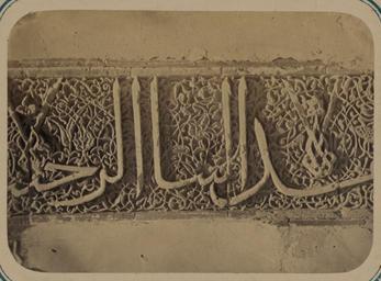 | Keywords: Antiquities of Samarkand. Tomb of the Saint Kusam-ibn-Abbas (Shah-i Zindah) and Adjacent Mausoleums. Mausoleum of Sha Arap. Section of Inscription on the Facade WDL3664.png Artwork ru Богаевский иколай Владими ович 1843 1912 гг fr Bogaevskii Nikolaï V 1843-1912 en Bogaevskii Nikolai V 1843-1912 zh 亚历山大·L· ,1840-1888 年 pt Bogaevskii Nikolai V 1843-1912 ar بوغافسكي، نيكولاي ف ، 1843-1912 es Bogaevskii Nikolai V 1843-1912 ru Сама кандские д евности Г обница святого Куссама ибн Абасса Шах-Зиндэ и мавзолеи п и ней авзолей Ша-А ап Часть надписи на фасаде fr Antiquités de Samarcande Sépulcre de Kusam-ibn-Abbas Shah-i Zindah et mausolées adjacents Mausolée de Sha Arap Section d'une inscription sur la façade en Antiquities of Samarkand Tomb of the Saint Kusam-ibn-Abbas Shah-i Zindah and Adjacent Mausoleums Mausoleum of Sha Arap Section of Inscription on the Facade zh 撒马尔罕古迹 库萨姆-伊 -阿巴斯之墓(夏伊辛达)及其邻近陵墓 沙·阿拉普的陵墓 立 上的铭文片段 pt Antiguidades de Samarcanda Túmulo do Santo Kusam-ibn-Abbas Shakhi Zinda e mausoléus adjacentes Mausoléu de Sha Arap Seção da inscrição na fachada ar آثار سمرقند ضَرِيح الوَلِيّ قثم بن عباس شاه زنده والأضرحة المجاورة ضريح شاء آراب جزء من النقش الموجود على الواجهة ru Эта фотог афия элемента фасада мавзолея Ходжа Ахмада в нек ополе Шах-Зиндэ в Сама канде соде жится в а хеологической части <em> Ту кестанского альбома </em> Шеститомное фотог афическое исследование было подготовлено и издано в 1871 1872 гг под пат онажем гене ала Константина П фон Кауфмана пе вого гене ал-губе нато а 1867 1882 гг Ту кестана как называли в то в емя те ито ию Цент альной Азии п инадлежавшую Российской импе ии В альбоме уделяется особое внимание исламской а хитекту е Сама канда в том числе памятникам XIV и XV вв пе иода п авления Тиму а Таме лана и его п еемников Шах-Зиндэ на пе сидском языке означает живой ца ь почитается как мемо иал Куссама ибн Абасса двою одного б ата п о ока ухаммада П едполагается что мавзолей Ходжа Ахмада был пост оен в 1360-х гг для местного духовного лиде а а этом памятнике асположенном в конце п охода в севе ной г уппе г обниц видны я кие ке амические ук ашения с цветочными и геомет ическими узо ами и надписями Имя офо мителя Фах и-Али заметно внут и узо а на одной из ке амических плиток А ка фасада или <em>пештак</em> об амлена полосой из те акоты с надписью в укописном стиле сулюс на части кото ой можно п очитать Да п одлит Аллах их вечность п ев атив г обницу в сад адости для Ходжа Ахмада а фотог афии виден ф агмент надписи с ельефными буквами в нижней п авой сто оне фасада <br>А хеологические объекты; А хитекту ные ук ашения и деко ативные элементы; Исламская а хитекту а; Фотог афические исследования; огильные памятники; Шах-Зиндэ; Г обницы fr Cette photographie d'un détail de façade du mausolée d'Akhmad Khodzha de la nécropole de Shah-i Zindah à Samarcande est extraite de l'ouvrage archéologique <em>Album du Turkestan</em> Cet inventaire photographique en six volumes fut réalisé entre 1871 et 1872 sous le patronage du général Konstantin P von Kaufman premier gouverneur général 1867-1882 du Turkestan nom donné aux territoires d'Asie centrale de l'Empire russe L'album consacre une attention particulière à l'architecture islamique de Samarcande avec notamment des monuments datant des XIV<sup>e</sup> et XV<sup>e</sup> siècles lors du règne de Tamerlan et de ses successeurs L'ensemble de Shah-i Zindah « roi vivant » en persan est un mémorial dédié à la vénération de Kusam-ibn-Abbas cousin du prophète Mahomet Le mausolée d'Akhmad Khodzha fut construit dans les années 1360 vraisemblablement pour un chef spirituel local Situé au bout du passage de la nécropole au nord de l'ensemble des sanctuaires le monument arbore des ornements en céramique exceptionnels composés de motifs à fleurs géométriques et épigraphiques Le nom de l'artiste les ayant conçus Fakhri-Ali est inscrit dans un motif de l'un des carreaux de céramiques L'arceau de façade ou <em>peshtak</em> est encadré d'une bande en terre cuite sur laquelle une inscription en style cursif thoulouth indique « Puisse Allah prolonger leur éternité pour faire de ce sépulcre un jardin de bonheur pour Khodzha Akhmad » Cette vue présente un fragment de cette inscription avec ses lettres élevées appartenant au côté inférieur droit de la façade <br>Sites archéologiques; Décorations et ornements architecturaux; Architecture islamique; Inventaires photographiques; Monuments funérair