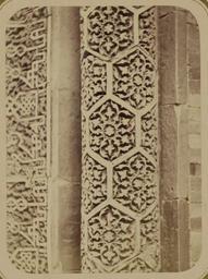 | Keywords: Antiquities of Samarkand. Tomb of the Saint Kusam-ibn-Abbas (Shah-i Zindah) and Adjacent Mausoleums. Mausoleum of Sha Arap WDL3670.png Artwork ru Богаевский иколай Владими ович 1843 1912 гг fr Bogaevskii Nikolaï V 1843-1912 en Bogaevskii Nikolai V 1843-1912 zh 亚历山大·L· ,1840-1888 年 pt Bogaevskii Nikolai V 1843-1912 ar بوغافسكي، نيكولاي ف ، 1843-1912 es Bogaevskii Nikolai V 1843-1912 ru Сама кандские д евности Г обница святого Куссама ибн Абасса Шах-Зиндэ и мавзолеи п и ней авзолей Ша-А ап fr Antiquités de Samarcande Sépulcre de Kusam-ibn-Abbas Shah-i Zindah et mausolées adjacents Mausolée de Sha Arap en Antiquities of Samarkand Tomb of the Saint Kusam-ibn-Abbas Shah-i Zindah and Adjacent Mausoleums Mausoleum of Sha Arap zh 撒马尔罕古迹 库萨姆-伊 -阿巴斯之墓(夏伊辛达)及其邻近陵墓 沙·阿拉普的陵墓 pt Antiguidades de Samarcanda Túmulo do Santo Kusam-ibn-Abbas Shah-i Zindah e mausoléus adjacentes Mausoléu de Sha Arap ar آثار سمرقند ضَرِيح الوَلِيّ قثم بن عباس شاه زنده والأضرحة المجاورة ضريح شاء آراب ru Эта фотог афия фасада неизвестного мавзолея асположенного в севе ной г уппе г обниц нек ополя Шах-Зиндэ Сама канд Узбекистан соде жится в а хеологической части <em> Ту кестанского альбома </em> Шеститомное фотог афическое исследование было подготовлено и издано в 1871 1872 гг под пат онажем гене ала Константина П фон Кауфмана пе вого гене ал-губе нато а 1867 1882 гг Ту кестана как называли в то в емя те ито ию Цент альной Азии п инадлежавшую Российской импе ии В альбоме уделяется особое внимание исламской а хитекту е Сама канда в том числе памятникам XIV и XV вв пе иода п авления Тиму а Таме лана и его п еемников Особенно следует отметить Шах-Зиндэ на пе сидском языке означает живой ца ь кото ый пост оен на возвышенности бывшей местом д евнего поселения известного как Аф асиаб Шах-Зиндэ почитается как мемо иал Куссама ибн Абасса двою одного б ата п о ока ухаммада Хотя заказчик пост ойки этого мавзолея окончательно не оп еделен дата его ст оительства известна 1360 1361 гг Фасад мавзолея выделяется я кими многоцветными ке амическими ук ашениями По бокам а ки фасада или <em>пештака</em> находятся глазу ованные те акотовые колонны со сложными езными геомет ическими узо ами а этом ф агменте с левой сто оны а ки виден нижний сте жень колонны с шестиг анными сотами соде жащими симмет ичный лиственный узо из шести компонентов и шестиконечную звезду в цент е Слева асположена деко ативная полоса с надписью <br>А хеологические объекты; А хитекту ные ук ашения и деко ативные элементы; Исламская а хитекту а; Фотог афические исследования; огильные памятники; Шах-Зиндэ; Г обницы fr Cette photographie de la façade d'un mausolée non identifié situé au nord de l'ensemble des sanctuaires de la nécropole de Shah-i Zindah à Samarcande Ouzbékistan est extraite de l'ouvrage archéologique <em>Album du Turkestan</em> Cet inventaire photographique en six volumes fut réalisé entre 1871 et 1872 sous le patronage du général Konstantin P von Kaufman premier gouverneur général 1867-1882 du Turkestan nom donné aux territoires d'Asie centrale de l'Empire russe L'album consacre une attention particulière à l'architecture islamique de Samarcande avec notamment des monuments datant des XIV<sup>e</sup> et XV<sup>e</sup> siècles lors du règne de Tamerlan et de ses successeurs Il convient de souligner que l'ensemble de Shah-i Zindah « roi vivant » en persan fut construit sur le site élevé d'une ancienne colonie connue sous le nom d'Afrosiabe et qu'il était dédié à la vénération de Kusam-ibn-Abbas cousin du prophète Mahomet Bien que le commanditaire du mausolée n'ait pas été identifié avec certitude on a pu déterminer qu'il fut bâti entre 1360 et 1361 La façade du mausolée se distingue par des ornements en céramique polychrome exceptionnels L'arceau de façade ou <em>peshtak</em> est encadré de colonnes en terre cuite vernissée et sculptée décorées de motifs géométriques complexes Cette vue présente un fragment du côté gauche de l'arceau notamment la partie inférieure du fût de colonne Ce dernier est orné de « cellules » hexagonales contenant des motifs de feuillage symétriques avec six composants et une étoile à six branches au centre Une bande d'inscription décorative est visible sur la gauche <br>Sites archéologiques; Décorations et ornements architecturaux; Architecture islamique; Inventaires photographiques; Monuments funéraires; Shāh-i Zindah; Tombes en This photograph of 