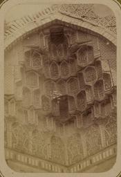 | Keywords: Antiquities of Samarkand. Tomb of the Saint Kusam-ibn-Abbas (Shah-i Zindah) and Adjacent Mausoleums. Mausoleum of Sha Arap. Detail of a Corner of the Mausoleum WDL3675.png Artwork ru Богаевский иколай Владими ович 1843 1912 гг fr Bogaevskii Nikolaï V 1843-1912 en Bogaevskii Nikolai V 1843-1912 zh 亚历山大·L· ,1840-1888 年 pt Bogaevskii Nikolai V 1843-1912 ar بوغافسكي، نيكولاي ف ، 1843-1912 es Bogaevskii Nikolai V 1843-1912 ru Сама кандские д евности Г обница святого Куссама ибн Абасса Шах-Зиндэ и мавзолеи п и ней авзолей Ша-А ап Ф агмент угла мавзолея fr Antiquités de Samarcande Sépulcre de Kusam-ibn-Abbas Shah-i Zindah et mausolées adjacents Mausolée de Sha Arap Détail d'un angle du mausolée en Antiquities of Samarkand Tomb of the Saint Kusam-ibn-Abbas Shah-i Zindah and Adjacent Mausoleums Mausoleum of Sha Arap Detail of a Corner of the Mausoleum zh 撒马尔罕古迹 库萨姆-伊 -阿巴斯之墓(夏伊辛达)及其邻近陵墓 沙·阿拉普的陵墓 陵墓角落特写 pt Antiguidades de Samarcanda Túmulo do Santo Kusam-ibn-Abbas Shah-i Zindah e mausoléus adjacentes Mausoléu de Sha Arap Detalhe de um canto do mausoléu ar آثار سمرقند ضَرِيح الوَلِيّ قثم بن عباس شاه زنده والأضرحة المجاورة ضريح شاء آراب تفاصيل أحد جوانب الضريح ru а этой фотог афии изоб ажен внут енний угол неизвестного мавзолея в севе ной г уппе г обниц нек ополя Шах-Зиндэ Сама канд Узбекистан Эта фотог афия соде жится в а хеологической части <em> Ту кестанского альбома </em> Шеститомное исследование было подготовлено и издано в 1871 1872 гг под пат онажем гене ала Константина П фон Кауфмана пе вого гене ал-губе нато а 1867 1882 гг Ту кестана как называли в то в емя те ито ию Цент альной Азии п инадлежавшую Российской импе ии В альбоме уделяется особое внимание исламской а хитекту е Сама канда в том числе памятникам XIV и XV вв пе иода п авления Тиму а Таме лана и его п еемников Особенно следует отметить Шах-Зиндэ на пе сидском языке означает живой ца ь кото ый пост оен на возвышенности бывшей местом д евнего поселения известного как Аф асиаб Шах-Зиндэ почитается как мемо иал Куссама ибн Абасса двою одного б ата п о ока ухаммада Хотя заказчик пост ойки этого мавзолея окончательно не оп еделен дата его ст оительства известна 1360 1361 гг Ско ее всего мавзолей был пост оен для девушки благо одного п оисхождения Обвал купола п оизошедший ве оятно из-за землет ясения позволяет хо ошо ассмот еть внут енние стены Эта севе о-восточная угловая ниша венчается сводом с сотовой ст укту ой <em>mocárabe</em> г ани кото ого изобилуют ук ашениями Элементы свода уходят вве х от небольших п ик епленных к стене колонн с капителями ук ашенными узо ом из пе еплетающихся полос Колонны об амляют деко ативные панели с изоб ажениями лотоса внут и сложных цветочных узо ов <br>А хеологические объекты; А хитекту ные ук ашения и деко ативные элементы; Исламская а хитекту а; Фотог афические исследования; огильные памятники; Шах-Зиндэ; Г обницы fr Cette photographie de l'angle intérieur d'un mausolée non identifié situé au nord de l'ensemble des sanctuaires de la nécropole de Shah-i Zindah à Samarcande Ouzbékistan est extraite de l'ouvrage archéologique <em>Album du Turkestan</em> Cet inventaire en six volumes fut réalisé entre 1871 et 1872 sous le patronage du général Konstantin P von Kaufman premier gouverneur général 1867-1882 du Turkestan nom donné aux territoires d'Asie centrale de l'Empire russe L'album consacre une attention particulière à l'architecture islamique de Samarcande avec notamment des monuments datant des XIV<sup>e</sup> et XV<sup>e</sup> siècles lors du règne de Tamerlan et de ses successeurs Il convient de souligner que l'ensemble de Shah-i Zindah « roi vivant » en persan fut construit sur le site élevé d'une ancienne colonie connue sous le nom d'Afrosiabe et qu'il était dédié à la vénération de Kusam-ibn-Abbas cousin du prophète Mahomet Bien que le commanditaire de ce mausolée n'ait pas été identifié avec certitude on a pu déterminer qu'il fut bâti entre 1360 et 1361 probablement pour une jeune fille de naissance noble Le dôme s'est effondré vraisemblablement dû à un tremblement de terre permettant une vue dégagée des murs intérieurs Cette saillie située à l'angle nord-est est dominée par une voûte en « nid d'abeilles » <em>mocarabe</em> dotée de facettes en céramique abondamment décorées Les éléments de la voûte
