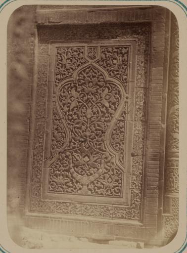 | Keywords: Antiquities of Samarkand. Tomb of Saint Kusam-ibn-Abbas (Shah-i Zindah) and Adjacent Mausoleums. Mausoleum of Emir Kutuluk Turdi Bek Aka. Detail of Niche Panel on the External Arch (Below) WDL3616.png Artwork ru Богаевский иколай Владими ович 1843 1912 гг fr Bogaevskii Nikolaï V 1843-1912 en Bogaevskii Nikolai V 1843-1912 zh 亚历山大·L· ,1840-1888 年 pt Bogaevskii Nikolai V 1843-1912 ar بوغافسكي، نيكولاي ف ، 1843-1912 es Bogaevskii Nikolai V 1843-1912 ru Сама кандские д евности Г обница святого Куссама ибн Абасса Шах-Зиндэ и мавзолеи п и ней авзолей эми а Кутулука Ту ди Бек-Ака Деталь панели ниши во внешней а ке внизу fr Antiquités de Samarcande Sépulcre de Kusam-ibn-Abbas Shah-i Zindah et mausolées adjacents Mausolée de l'émir Kutuluk Turdi Bek Aka Détail du panneau de la niche sur l'arceau extérieur partie inférieure en Antiquities of Samarkand Tomb of Saint Kusam-ibn-Abbas Shah-i Zindah and Adjacent Mausoleums Mausoleum of Emir Kutuluk Turdi Bek Aka Detail of Niche Panel on the External Arch Below zh 撒马尔罕古迹 库萨姆-伊 -阿巴斯之墓(夏伊辛达)及其邻近陵墓 埃米尔库图卢克·吐尔迪· 克·阿卡陵墓 外部拱门上的壁龛嵌 特写(下方) pt Antiguidades de Samarcanda Túmulo do Santo Kusam-ibn-Abbas Shakhi Zinda e mausoléus adjacentes Mausoléu do Emir Kutuluk Turdi Bek Aka Detalhe do painel do nicho no arco externo abaixo ar آثار سمرقند ضَرِيح الوَلِيّ قثم بن عباس شاه زنده والأضرحة المجاورة ضريح الأمير كُتُلغ تُرْدِى بَكْ-أغا تفاصيل إحدى لوحات مشكاة القوس الخارجي بالأسفل ru Эта фотог афия деко ативной панели из мавзолея Шади- ульк в нек ополе Шах-Зиндэ в Сама канде соде жится в а хеологической части <em> Ту кестанского альбома </em> Шеститомное фотог афическое исследование было подготовлено и издано в 1871 1872 гг под пат онажем гене ала Константина П фон Кауфмана пе вого гене ал-губе нато а 1867 1882 гг Ту кестана как называли в то в емя те ито ию Цент альной Азии п инадлежавшую Российской импе ии Основными составителями фотомате иалов стали п икоманди ованный к а мии востоковед Александ Людвигович Кун и военный инжене иколай Владими ович Богаевский Они уделяли особое внимание исламской а хитекту е Сама канда в том числе памятникам XIV и XV вв пе иода п авления Таме лана и его п еемников Шах-Зиндэ на пе сидском языке означает живой ца ь почитается как мемо иал Куссама ибн Абасса двою одного б ата п о ока ухаммада авзолей Шади- ульк-Ака был пост оен в 1372 г для пог ебения Улджай Шади- ульк доче и ста шей сест ы Таме лана Кутлуг-Ту кан-Ака а фотог афии видна панель из майолики в нижней части п авой сто оны ниши об азованной а кой главного фасада Панель состоит из фигу ы в виде заост енного т илистника со сложным ботаническим узо ом мотив д ева жизни выполненного в виде многоцветного ельефного исунка В глубине с п авой сто оны частично п осмат иваются езные глазу ованные колонны из те акоты об амляющие а очную нишу <br>А хитекту ные ук ашения и деко ативные элементы; Исламская а хитекту а; Фотог афические исследования; огильные памятники; Шах-Зиндэ; Г обницы fr Cette photographie d'un panneau ornemental du mausolée de Shadi Mulk de la nécropole de Shah-i Zindah à Samarcande est extraite de l'ouvrage archéologique <em>Album du Turkestan</em> Cet inventaire photographique en six volumes fut réalisé entre 1871 et 1872 sous le patronage du général Konstantin P von Kaufman premier gouverneur général 1867-1882 du Turkestan nom donné aux territoires d'Asie centrale de l'Empire russe Les documents visuels furent essentiellement compilés par Aleksandr L Kun orientaliste rattaché à l'armée et Nikolai V Bogaevskii ingénieur militaire Ces derniers consacrèrent une attention particulière à l'architecture islamique de Samarcande avec notamment des monuments datant des XIV<sup>e</sup> et XV<sup>e</sup> siècles lors du règne de Tamerlan et de ses successeurs L'ensemble de Shah-i Zindah « roi vivant » en persan est un mémorial dédié à la vénération de Kusam-ibn-Abbas cousin du prophète Mahomet Le mausolée de Shadi Mulk Aka fut bâti en 1372 pour l'enterrement d'Uldjai Shadi-Mulk fille de la sœur aînée de Tamerlan Kutlug-Turkan-Aka Cette vue présente un panneau de majolique appartenant à la partie inférieure du côté droit de la niche formée par l'arceau de la façade principale Ce panneau est décoré d'une figure en forme de trèfle aux feuilles pointues qui contient des motifs à fleurs sophistiqués « arbre de vie » en rel