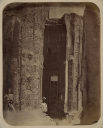 | Keywords: Antiquities of Samarkand. Tomb of the Saint Kusam-ibn-Abbas (Shah-i Zindah) and Adjacent Mausoleums. Mausoleum of Shirin Bika. View of the Front WDL3681.png Artwork ru Богаевский иколай Владими ович 1843 1912 гг fr Bogaevskii Nikolaï V 1843-1912 en Bogaevskii Nikolai V 1843-1912 zh 亚历山大·L· ,1840-1888 年 pt Bogaevskii Nikolai V 1843-1912 ar بوغافسكي، نيكولاي ف ، 1843-1912 es Bogaevskii Nikolai V 1843-1912 ru Сама кандские д евности Г обница святого Куссама ибн Абасса Шах-Зиндэ и мавзолеи п и ней авзолей Ши ин-Бека Вид на фасад fr Antiquités de Samarcande Sépulcre de Kusam-ibn-Abbas Shah-i Zindah et mausolées adjacents Mausolée de Shirin Bika Vue de la façade en Antiquities of Samarkand Tomb of the Saint Kusam-ibn-Abbas Shah-i Zindah and Adjacent Mausoleums Mausoleum of Shirin Bika View of the Front zh 撒马尔罕古迹 库萨姆-伊 -阿巴斯之墓(夏伊辛达)及其邻近陵墓 林-比卡陵墓 正 景象 pt Antiguidades de Samarcanda Túmulo do Santo Kusam-ibn-Abbas Shah-i Zindah e mausoléus adjacentes Mausoléu de Shirin Bika Vista frontal ar آثار سمرقند ضَرِيح الوَلِيّ قثم بن عباس شاه زنده والأضرحة المجاورة ضريح شيرين بيك صورة للمقدمة ru Эта фотог афия фасада мавзолея Ши ин-Бек-Ака в нек ополе Шах-Зиндэ в Сама канде соде жится в а хеологической части <em> Ту кестанского альбома </em> Шеститомное фотог афическое исследование было подготовлено и издано в 1871 1872 гг под пат онажем гене ала Константина П фон Кауфмана пе вого гене ал-губе нато а 1867 1882 гг Ту кестана как называли в то в емя те ито ию Цент альной Азии п инадлежавшую Российской импе ии В альбоме уделяется особое внимание исламской а хитекту е Сама канда в том числе памятникам XIV и XV вв пе иода п авления Тиму а Таме лана и его п еемников Особенно следует отметить ансамбль Шах-Зиндэ на пе сидском языке означает живой ца ь кото ый почитается как мемо иал Куссама ибн Абасса двою одного б ата п о ока ухаммада Этот мавзолей был пост оен в 1385 1386 гг для младшей сест ы Тиму а и считается одним из величайших достижений в комплексе Шах-Зиндэ В цент е композиции от ажающей пе сидское влияние находится замечательная входная а ка или <em>пештак</em> увенчанная сталактитовыми углами подде живающими отк ытый полук углый свод есмот я на значительные пов еждения фасад пок ыт многочисленными ке амическими ук ашениями в том числе анними об азцами составной те акотовой мозаики цвета кото ой ва ьи уются от о анжевого и к асного до темно-синего Фасад также ук ашен полосами с надписями выполненными в укописном стиле сулюс Этот снимок сделан с севе ного угла мавзолея Шади- ульк <br>А хеологические объекты; Исламская а хитекту а; Фотог афические исследования; огильные памятники; Шах-Зиндэ; Г обницы fr Cette photographie de la façade du mausolée de Shirin Bika Aka situé dans la nécropole de Shah-i Zindah à Samarcande est extraite de l'ouvrage archéologique <em>Album du Turkestan</em> Cet inventaire photographique en six volumes fut réalisé entre 1871 et 1872 sous le patronage du général Konstantin P von Kaufman premier gouverneur général 1867-1882 du Turkestan nom donné aux territoires d'Asie centrale de l'Empire russe L'album consacre une attention particulière à l'architecture islamique de Samarcande avec notamment des monuments datant des XIV<sup>e</sup> et XV<sup>e</sup> siècles lors du règne de Tamerlan et de ses successeurs Il convient de souligner que l'ensemble de Shah-i Zindah « roi vivant » en persan est un mémorial dédié à la vénération de Kusam-ibn-Abbas cousin du prophète Mahomet Construit de 1385 à 1386 pour la petite sœur de Tamerlan ce mausolée est considéré comme l'une des réalisations les plus remarquables du grand ensemble de Shah-i Zindah Sa conception d'influence perse est centrée sur un splendide arceau d'entrée ou <em>peshtak</em> surplombé d'angles en « stalactites » qui soutiennent une voûte ouverte semi-circulaire Malgré les dommages considérables la façade présente encore de nombreux ornements de céramique notamment des exemples des premières mosaïques composites en terre cuite avec une palette de couleurs allant de l'orange et du rouge au bleu foncé La façade est également décorée de bandes d'inscription en style cursif thoulouth Cette vue fut prise de l'angle nord du mausolée de Shadi Mulk <br>Sites archéologiques; Architecture islamique; Inventaires photographiques; Monuments funéraires; Shāh-i Zindah; Tombes en This photograph of the facade of the Shirin Bika Aka Mausoleum at the Shah-i Zindah necropolis in Samarkand is 