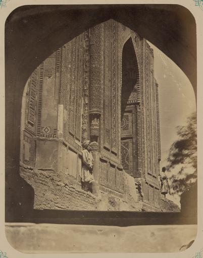 Keywords: Antiquities of Samarkand. Tomb of Saint Kusam-ibn-Abbas (Shah-i Zindah) and Adjacent Mausoleums. Mausoleums of Uldzh Inak and Bibi Zinet WDL3683.png Artwork ru Богаевский иколай Владими ович 1843 1912 гг fr Bogaevskii Nikolaï V 1843-1912 en Bogaevskii Nikolai V 1843-1912 zh 亚历山大·L· ,1840-1888 年 pt Bogaevskii Nikolai V 1843-1912 ar بوغافسكي، نيكولاي ف ، 1843-1912 es Bogaevskii Nikolai V 1843-1912 ru Сама кандские д евности Г обница святого Куссама ибн Абасса Шах-Зиндэ и мавзолеи п и ней авзолеи Ульдж Инаг и Биби Зинет Вид с юга на на ужные фасады мавзолеев Чугун-Бека и Кутулука Ту ди Бек-Ака fr Antiquités de Samarcande Sépulcre de Kusam-ibn-Abbas Shah-i Zindah et mausolées adjacents Mausolées d'Uldzh Inak et de Bibi Zinet Vue depuis le sud de l'extérieur des mausolées de Chuchun Bek et Kutuluk Turdi Bek Aka en Antiquities of Samarkand Tomb of Saint Kusam-ibn-Abbas Shah-i Zindah and Adjacent Mausoleums Mausoleums of Uldzh Inak and Bibi Zinet View from South of the Exterior of the Mausoleums of Chugun Bek and Kutuluk Turdi Bek Aka zh 撒马尔罕古迹 库萨姆-伊 -阿巴斯之墓(夏伊辛达)及其邻近陵墓 乌德兹·伊那卡陵墓和比比·兹内特的陵墓 从南 到的楚干- 克和库图卢克·吐尔迪· 克·阿卡陵墓外景 pt Antiguidades de Samarcanda Túmulo do Santo Kusam-ibn-Abbas Shah-i Zindah e mausoléus adjacentes Mausoléu de Uldzh Inak e Bibi Zinet Vista do sul do exterior do mausoléu de Chugun Bek e Kutuluk Turdi Bek Aka ar آثار سمرقند ضَرِيح الوَلِيّ قثم بن عباس شاه زنده والأضرحة المجاورة أضرحة ألْدْزَه إناك وبيبي زينيت منظر من جنوب الجزء الخارجي من أضرحة تشوشون بيك وكُتُلغ تُرْدِى بَكْ أغا ru Это впечатляющая фотог афия мавзолеев в нек ополе Шах-Зиндэ в Сама канде соде жится в а хеологической части <em> Ту кестанского альбома </em> Это обши ное шеститомное фотог афическое исследование было подготовлено и издано в 1871 1872 гг под пат онажем гене ала Константина П  фон Кауфмана пе вого гене ал-губе нато а 1867 1882 гг Ту кестана как называли в то в емя те ито ию Цент альной Азии п инадлежавшую Российской импе ии Основными составителями фотомате иалов стали п икоманди ованный к а мии востоковед Александ Людвигович Кун и военный инжене иколай Владими ович Богаевский Они уделяли особое внимание исламской а хитекту е Сама канда в том числе памятникам XIV и XV вв пе иода п авления Таме лана и его п еемников Тиму идов Шах-Зиндэ на пе сидском языке означает живой ца ь пост оенный на д евнем захо онении почитается как мемо иал Куссама ибн Абасса двою одного б ата п о ока ухаммада Два мавзолея изоб аженные здесь находятся на ве ху лестницы ведущей во вто ую п оходную комнату <em>ча так</em> откуда и сделан снимок Слева асположен мавзолей Эми -Заде 1386 г за кото ым виден мавзолей Шади- ульк-Ака также известный как Ту кан-Ака 1372 г Благода я защищенному местоположению их сложные ук ашения из ке амической плитки в том числе узо чатая а абская надпись сох анились относительно хо ошо Отдельно стоит отметить многоцветные глазу ованные колонны кото ые об амляют мавзолей Шади- ульк <br>А хеологические объекты; Исламская а хитекту а; Фотог афические исследования; огильные памятники; Шах-Зиндэ; Г обницы fr Cette magnifique vue des mausolées de la nécropole de Shah-i Zindah à Samarcande est extraite de l'ouvrage archéologique <em>Album du Turkestan</em> Cette édition somptueuse en six volumes fut réalisée entre 1871 et 1872 sous le patronage du général Konstantin P von Kaufman premier gouverneur général 1867-1882 du Turkestan nom donné aux territoires d'Asie centrale de l'Empire russe Les documents visuels furent essentiellement compilés par Aleksandr L  Kun orientaliste rattaché à l'armée et Nikolai V  Bogaevskii ingénieur militaire Ces derniers consacrèrent une attention particulière à l'architecture islamique de Samarcande avec notamment des monuments datant des XIV<sup>e</sup> et XV<sup>e</sup> siècles lors du règne de Tamerlan et de ses successeurs les Timourides Construit sur le site d'un ancien cimetière l'ensemble de Shah-i Zindah « roi vivant » en persan est un mémorial dédié à la vénération de Kusam-ibn-Abbas cousin du prophète Mahomet La vue présentée ici montre les deux mausolées situés au sommet des escaliers menant vers la deuxième salle de passage <em>chartak</em> de laquelle cette photographie fut prise Le mausolée de l'émir Zade  1386 est visible à gauch