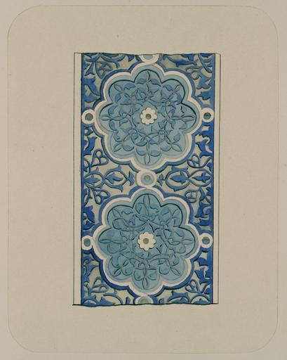 Keywords: Antiquities of Samarkand. Tomb of Saint Kusam-ibn-Abbas (Shah-i Zindah) and Adjacent Mausoleums. Tiles on the Exterior of the Mausoleum WDL3901.png Artwork ru Шостак Л А fr Shostak L A en Shostak L A zh L A ·斯塔克 pt Shostak L A ar شوستاك، ل أ es Shostak L A ru Сама кандские д евности Г обница святого Куссама ибн Абасса Шах-Зиндэ и мавзолеи п и ней Плитка на фасаде мавзолея fr Antiquités de Samarcande Sépulcre de Kusam-ibn-Abbas Shah-i Zindah et mausolées adjacents Carreaux de l extérieur du mausolée en Antiquities of Samarkand Tomb of Saint Kusam-ibn-Abbas Shah-i Zindah and Adjacent Mausoleums Tiles on the Exterior of the Mausoleum zh 撒马尔罕古迹 库萨姆-伊 -阿巴斯之墓(夏伊辛达)及其邻近陵墓 陵墓外部的瓷砖 pt Antiguidades de Samarcanda Túmulo do Santo Kusam-ibn-Abbas Shah-i Zindah e mausoléus adjacentes Azulejos no exterior do mausoléu ar آثار سمرقند ضَرِيح الوَلِيّ قثم بن عباس شاه زنده والأضرحة المجاورة بلاط السطح الخارجي للضريح ru Эта аква ель с изоб ажением о намента на фасаде мавзолея Эми -Заде асположенного на те ито ии нек ополя Шах-Зиндэ в Сама канде соде жится в а хеологической части <em> Ту кестанского альбома </em> Шеститомное фотог афическое исследование было подготовлено и издано в 1871 1872 гг под пат онажем гене ала Константина П фон Кауфмана пе вого гене ал-губе нато а 1867 1882 гг Ту кестана как называли в то в емя те ито ию Цент альной Азии п инадлежавшую Российской импе ии Основными составителями фотомате иалов стали п икоманди ованный к а мии востоковед Александ Людвигович Кун и военный инжене иколай Владими ович Богаевский Они уделяли особое внимание исламской а хитекту е Сама канда в том числе памятникам XIV и XV вв пе иода п авления Таме лана и его п еемников Шах-Зиндэ на пе сидском языке означает живой ца ь пост оен на месте д евнего поселения известного как Аф асиаб Комплекс почитается как мемо иал Куссама ибн Абасса двою одного б ата п о ока ухаммада авзолей Эми -Заде был пост оен в 1386 г одним из п иближенных Таме лана есмот я на пов еждения нанесенные многоцветным ук ашениям фасад остается замечательным п име ом достижений деко ативного искусства С едней Азии а исунке показаны ке амические озетки об азующие ве тикальные деко ативные полосы по обеим сто онам а ки фасадa Подобные аква ельные эскизы соде жат инфо мацию о цвете кото ую невозможно было пе едать п и помощи фотог афий того в емени Вместе с тем данный исунок не в полной ме е от ажает сложность о игинального узо а <br>А хитекту ные ук ашения и деко ативные элементы; Исламское искусство; огильные памятники; Шах-Зиндэ; озаика; Г обницы; Аква ельные исунки fr Cette aquarelle des ornements de la façade du mausolée de l'émir Zade situé dans la nécropole de Shah-i Zindah à Samarcande est extraite de l'ouvrage archéologique <em>Album du Turkestan</em> Cet inventaire photographique en six volumes fut réalisé entre 1871 et 1872 sous le patronage du général Konstantin P von Kaufman premier gouverneur général 1867-1882 du Turkestan nom donné aux territoires d'Asie centrale de l'Empire russe Les documents visuels furent essentiellement compilés par Aleksandr L Kun orientaliste rattaché à l'armée et Nikolai V Bogaevskii ingénieur militaire Ces derniers consacrèrent une attention particulière à l'architecture islamique de Samarcande avec notamment des monuments datant des XIV<sup>e</sup> et XV<sup>e</sup> siècles lors du règne de Tamerlan et de ses successeurs Construit sur le site d'une ancienne colonie connue sous le nom d'Afrosiabe l'ensemble de Shah-i Zindah « roi vivant » en persan est un mémorial dédié à la vénération de Kusam-ibn-Abbas cousin du prophète Mahomet Le mausolée de l'émir Zade fut bâti en 1386 par un membre de la cour de Tamerlan Malgré la disparition d'une partie des ornements polychromes la façade reste un exemple majeur des réalisations de l'art décoratif d'Asie centrale Les dessins présentent des rosettes céramiques qui forment des bandes décoratives verticales sur chaque côté de l arceau de façade De telles esquisses à l'aquarelle transmettent des informations relatives aux couleurs qui ne sont pas disponibles sur la photographie de l'époque Pourtant l esquisse ne restitue pas pleinement la complexité du dessin original <br>Décorations et ornements architecturaux; Art islamique; Monuments funéraires; Shāh-i Zindah; Carreaux; Tombes; Aquarelles en This watercolor of facade ornaments on the Emir-Zade mausoleum at the Shah-i Zindah