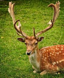 Keywords: antler antler carrier fallow deer hirsch dama dama male wild animal forest meadow nature lying rest