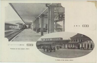Keywords: Anto Station 01.jpg ja 南 州鉄道安 驛のホームと駅舎 http //iccs aichi-u ac jp/postcard/manzhou/category-38/MZ023/ author < 1945 PD-Japan-oldphoto South Manchuria Railway Dandong Railway Station Antung Province Postcards of Japan