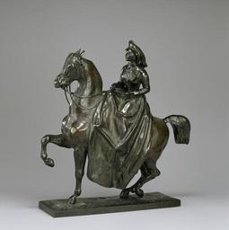 | Keywords: Antoine-Louis Barye - Amazon in Costume of 1830 - Walters 27145 - Profile.jpg In the 19th century the term Amazon was applied to women riders as well as to their long riding habits or costumes This young woman mounted side-saddle may be Hélène of Mecklenberg-Schwerin 1814-1858 who married the duke of Orléans in 1837 first issued 1845-1850 bronze with green over black patina cm 36 8 36 2 14 accession number 27 145 20101 William T Walters Baltimore prior to 1889 mode of acquisition unknown Henry Walters city Baltimore Walters Art Museum Henry Walters Acquired by William T Walters before 1889 Signature Cast through from model BARYE; Number Painted inside in white W 102 The Works of Antoine-Louis Barye American Art Gallery New York New York 1889-1890 Barye Sculpture and Drawings American Federation of Arts New York 1959-1960 Antoine-Louis Barye Marion Koogler McNay Art Institute San Antonio 1965 Untamed The Art of Antoine-Louis Barye The Walters Art Museum Baltimore; Philbrook Museum of Art Tulsa; The Henry Morrison Flagler Museum Palm Beach 2007-2008 place of origin Paris France Walters Art Museum license Sculptures by Antoine-Louis Barye Media contributed by the Walters Art Museum needs category review Sculptures in the Walters Art Museum Riding habits in portraits Equestrian statues with rider in sidesaddle Sculptures of horsewomen |