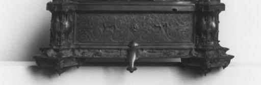 | Keywords: Antoine-Louis Barye - Base - Walters 27124.jpg A Tartar warrior reins his horse Walters 27 123 The warrior's dress including the curled shoes and the fur tunic worn over chain mail identifies him as coming from the time of Genghis Khan 1167-1227 the founder of the Mongol Empire The statuette is generally regarded as one of Barye's most romantic works This base was originally described as being in the Byzantine style between 1796 1875 bronze cm 17 1 43 8 accession number 27 124 25907 William T Walters Baltimore date and mode of acquisition unknown Henry Walters city Baltimore Walters Art Museum Henry Walters Acquired by William T Walters Untamed The Art of Antoine-Louis Barye The Walters Art Museum Baltimore; Philbrook Museum of Art Tulsa; The Henry Morrison Flagler Museum Palm Beach 2007-2008 place of origin Paris France Walters Art Museum license Sculptures by Antoine-Louis Barye Media contributed by the Walters Art Museum needs category review Collections of the Walters Art Museum |