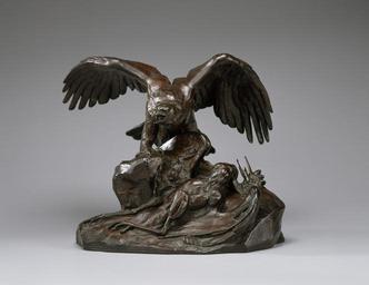 | Keywords: Antoine-Louis Barye - Eagle Holding a Heron (first version) - Walters 27146 - Profile.jpg An eagle with its beak opened as though it is screeching has landed on a rock and leans over the lifeless body of a heron This composition is one of several that trace their origin to a project that the French government conceived in 1834 to place on top of the Arc de Triomphe a gigantic statue of an eagle with a wingspan of over 75 feet In its talons the eagle was intended to grasp various trophies of war For fear of offending past enemies the government eventually canceled the project Barye however reused the figure of the eagle with the outstretched wings in some of his compositions including this example first issued 1857 bronze with remnants of green and black over red-brown patina cm 28 6 36 2 27 accession number 27 146 37792 William T Walters Baltimore prior to 1889 mode of acquisition unknown Henry Walters city Baltimore Walters Art Museum Henry Walters Acquired by William T Walters before 1889 Signature Cast through from model A L BARYE; Number Painted inside in white W 17 The Works of Antoine-Louis Barye American Art Gallery New York New York 1889-1890 Untamed The Art of Antoine-Louis Barye The Walters Art Museum Baltimore; Philbrook Museum of Art Tulsa; The Henry Morrison Flagler Museum Palm Beach 2007-2008 place of origin Paris France Walters Art Museum license Sculptures by Antoine-Louis Barye Media contributed by the Walters Art Museum needs category review Sculptures in the Walters Art Museum Sculptures of eagles |
