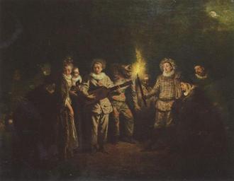 | Keywords: Antoine Watteau 025.jpg Artwork de Die italienische Komödie L'amour au théâtre italien oil on canvas cm 37 48 Berlin de Gemäldegalerie The Yorck Project 10 000 Meisterwerke der Malerei DVD-ROM 2002 ISBN 3936122202 Distributed by DIRECTMEDIA Publishing GmbH ca 1718 Creator Antoine Watteau http //mail wikipedia org/pipermail/wikide-l/2005-April/012195 html Other versions <gallery> File Jean-Antoine Watteau Love in the Italian Theatre JPG complete painting <br />900 × 690 pixels File Antoine Watteau 026 jpg detail <br />2 024 × 2 464 pixels </gallery> PD-old-100 PD-Art-YorckProject Rococo paintings of people Theatre in art Comédie-Italienne Chiaroscuro 1710s paintings oil paintings of people Love in paintings Paintings by Watteau in the Gemäldegalerie Berlin People with fire in art Fire in paintings People with the Moon in art |