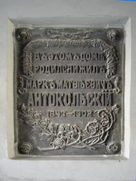 Keywords: Antokolski Wilno.jpg Mark Antokolski memorial tablet in Vilnius Own 2007-07-20 Alma Pater Mark Antokolski Here-lived plaques in Vilnius Russian inscriptions in Lithuania