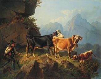| Keywords: Anton Braith Auf dem Weg zur Alm.jpg Auf dem Weg zur Alm oil on canvas 83 x 106 cm from the collections of Schloss Friedrichshafen; via http //www bassenge com/ 1860 Creator Anton Braith PD-old-100 Creator Anton Braith Paintings of cattle Mountain pastures 1860 paintings Anton Braith Images from Galerie Bassenge Transhumance in the alps |