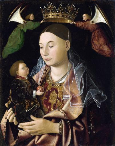 Keywords: Antonello da messina, madonna salting.jpg Madonna Salting ca 1460-1469 Oil on panel cm 43 2 34 3 Institution National Gallery London http //www nationalgallery org uk/paintings/possibly-by-antonello-da-messina-the-virgin-and-child other versions Assessments 1 File Antonello da messina madonna salting jpg PD-old-100 DEFAULTSORT 1460-1469; Madonnas by Antonello da Messina 1460-69 circa Paintings by Antonello da Messina in the National Gallery London 1460s paintings in the United Kingdom 15th-century oil on panel paintings in the United Kingdom 15th-century paintings of Madonna and Child Virgin Mary crowned by angels 15th-century paintings of angels with humans Virgin Mary with pomegranate Angels in the air Angels with crowns 15th-century religious paintings in the United Kingdom Veils in art Paintings of angels in the United Kingdom