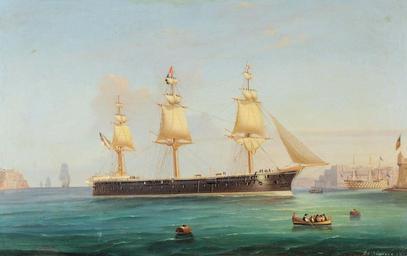 | Keywords: Antonio de Simone - A English Battleship.jpg 1872 oil canvas cm 50 80 accession number object history credit line exhibition history De Simone 1872 ~ lower right signature / date http //www arcadja com/auctions/de/private/de_simone_antonio/kunstwerken/405788/0/ Cambi Imperia Italy 11 09 2010 lot 370 via ARCADJA auction results PD-old-auto-1923 1907 Antonio de Simone I Paintings of ships | ||||