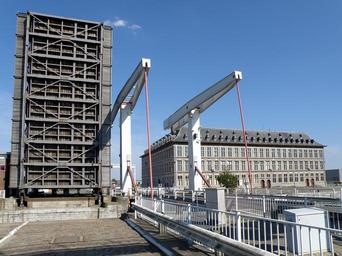Keywords: antwerp belgium buildings structures architecture drawbridge bridge raised sky clouds urban
