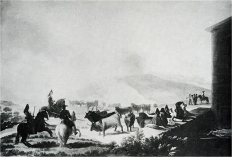 | Keywords: Apartado de toros (Goya).jpg en Oil on canvas 165 x 285 cm painted by Francisco de Goya in 1786-1787 This is a copy of some picture of the painting holded by the Fundacion de Goya en Aragon The painting is in an unknown location and this archive is the only one left of the painting author of the picture unknown but it is believed that it has been made by Jean Laurent 1816-1886 fr Huile sur toile 165 x 285 cm peinte par Francisco de Goya en 1786-1787 Il s'agit d'une copie d'une photo de la peinture que possède la Fundacion de Goya en Aragon La peinture est dans une localisation inconnue et cette archive est la seule et unique de la peinture l'auteur de la photo est inconnu mais il s'agit probablement d'une oeuvre de Jean Laurent 1816-1886 es Óleo sobre lienzo 165 x 285 cm realizado por Francisco de Goya en 1786-1787 Es una copia de una fotografía de la pintura que posee la Fundación de Goya en Aragon La pintura se encuentra en paradero desconocido y este archivo es el único que queda de la pintura el autor de la foto es desconocido pero se piensa que ha podido ser obra de Jean Laurent 1816-1886 2014-03-25 10 57 42 http //www fundaciongoyaenaragon es/goya/obra/catalogo/ ficha 516 Fundación Goya en Aragón PD-Art Uploaded with UploadWizard 1786 paintings 1787 paintings Cuadros para la alameda de los duques de Osuna 19th-century oil on canvas paintings |
